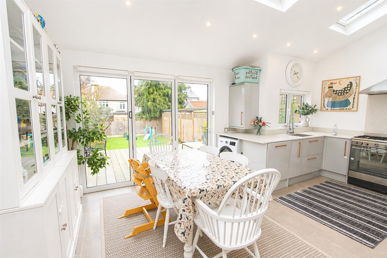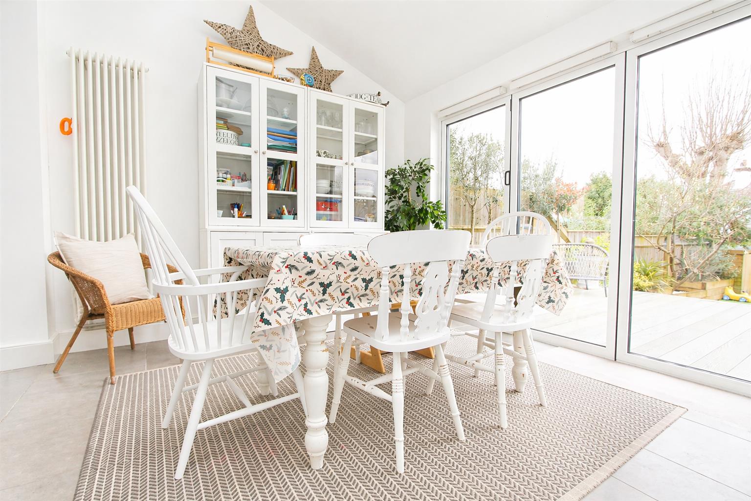 Tiled flooring, double glazed bi folding doors to rear aspect, three Velux, windows and UPVC double glazed window to rear, modern radiator , cupboard housing “Worcester” boiler.