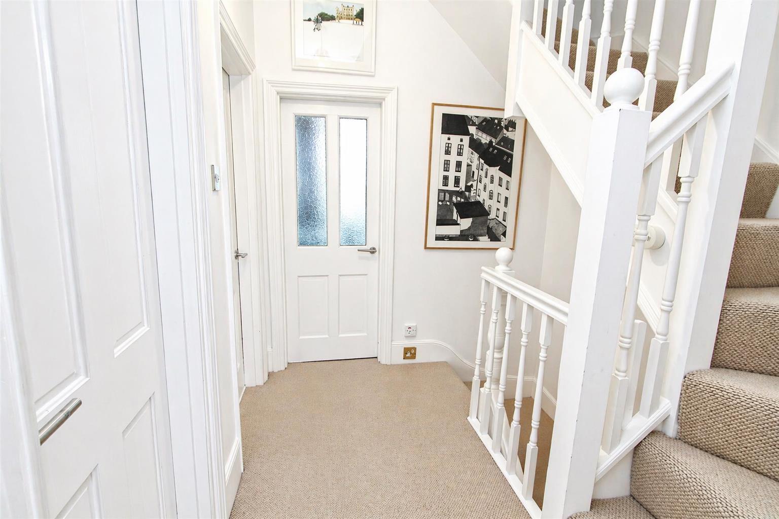 Solid wood flooring, old school style radiator, ceiling cornice, obscure UPVC double glazed window to front aspect, access to cellar and further storage cupboard.