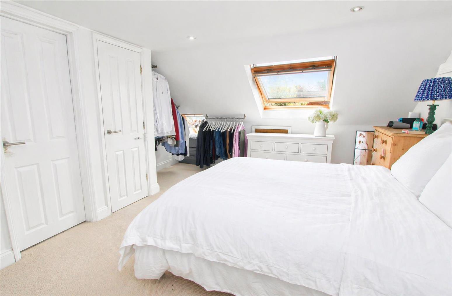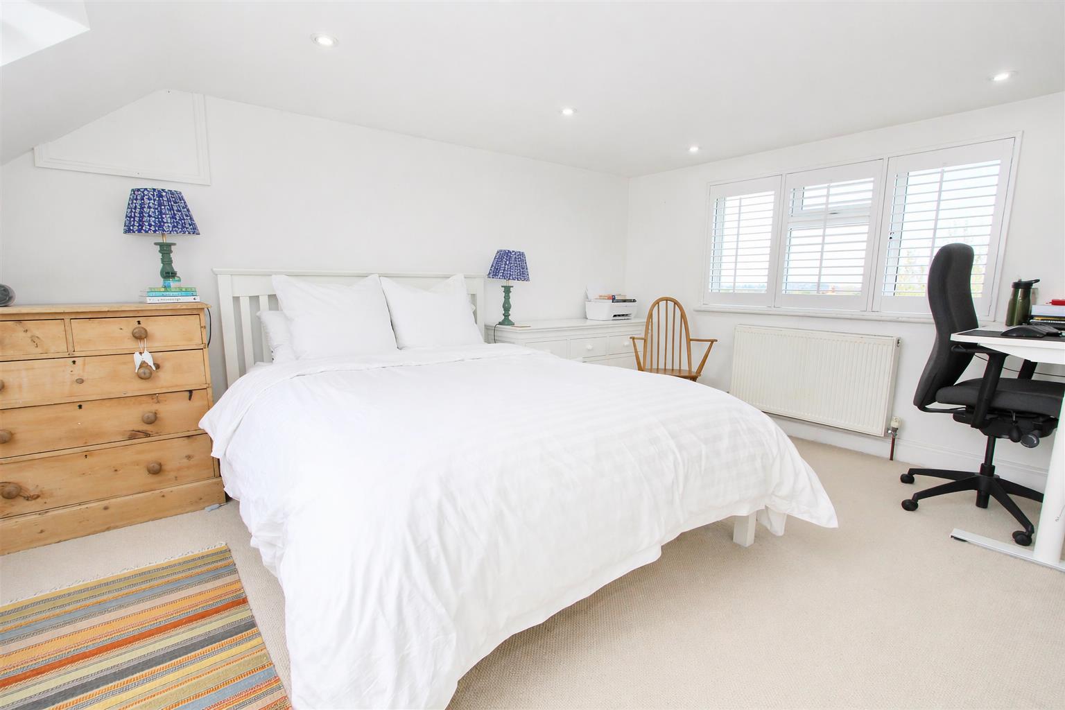 UPVC double glazed window to rear aspect, fitted plantation shutters, two Velux windows at front, eaves storage, double panel radiator.