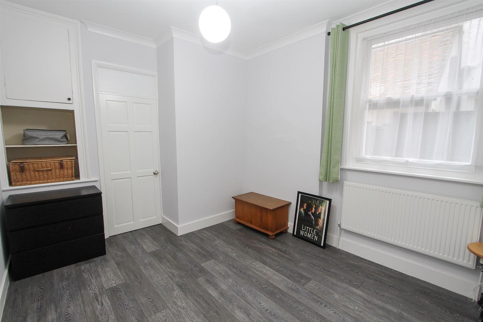 Radiator, laminate flooring, window to side aspect, built in cupboard.