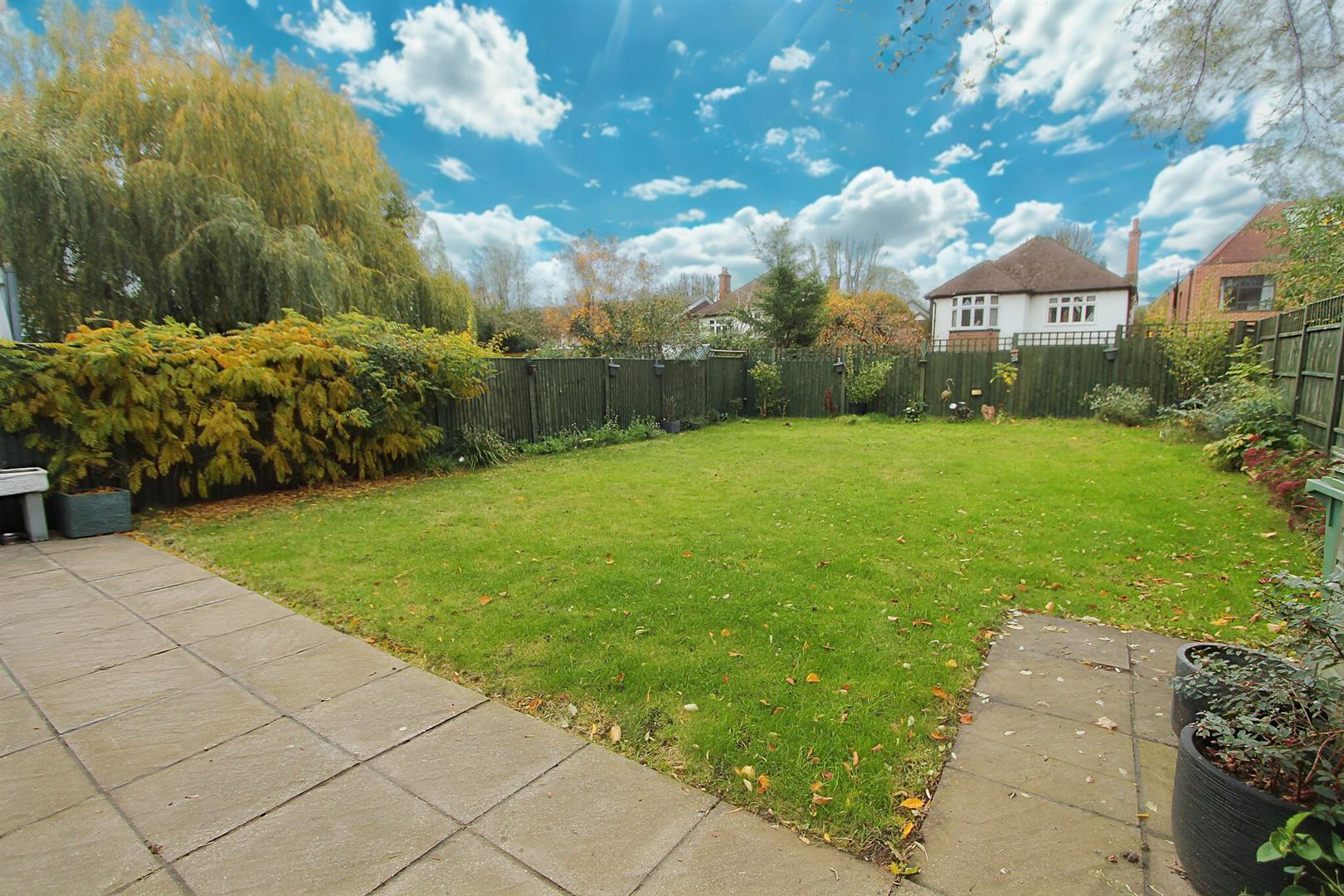 Private large garden mainly laid to lawn, patio area, shed, gate with side access.