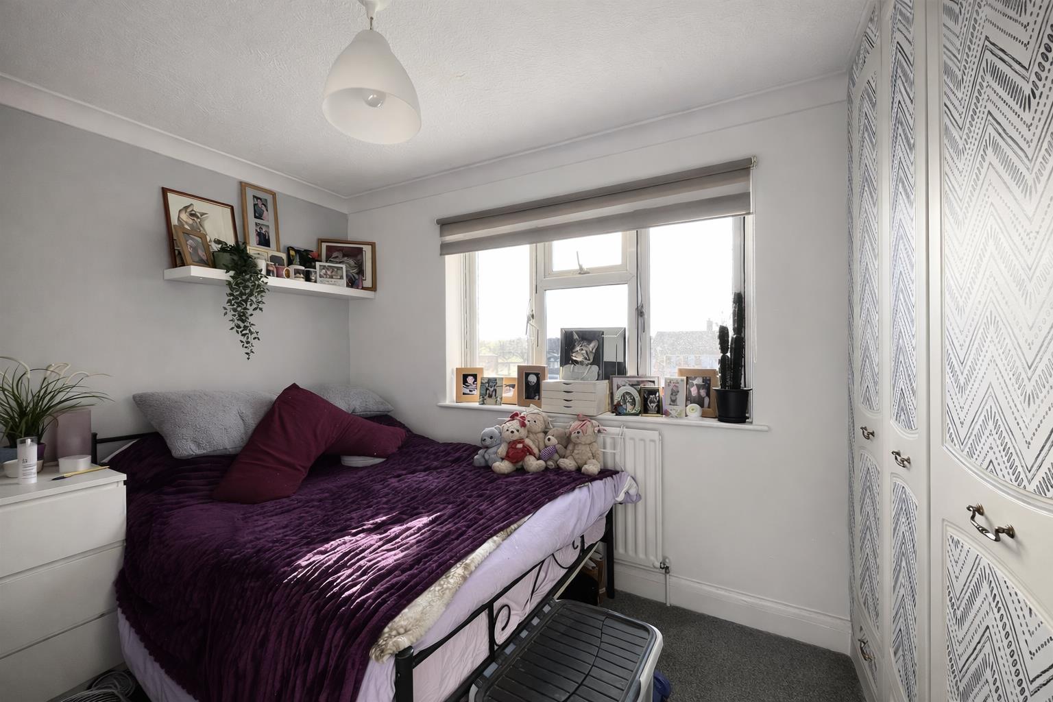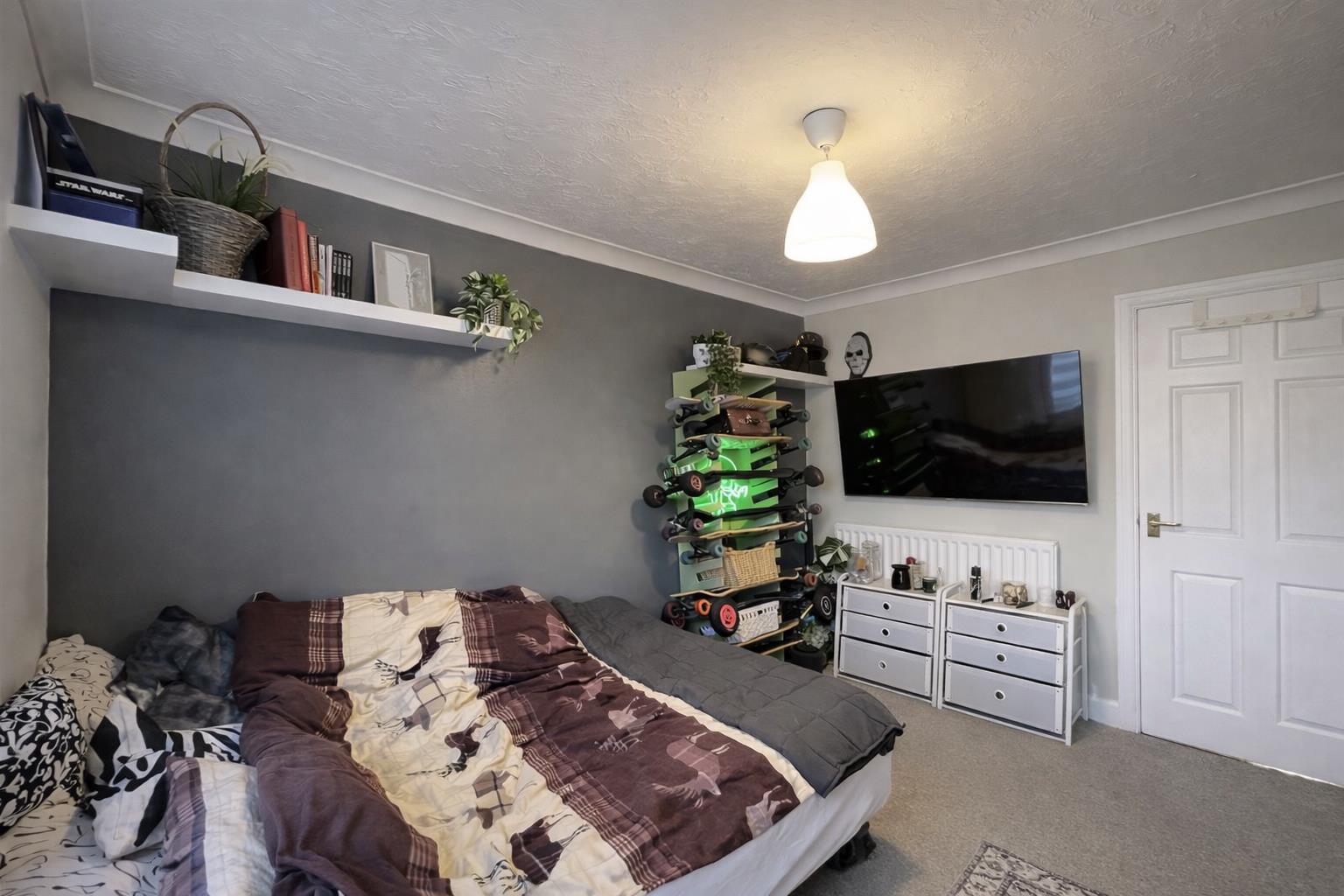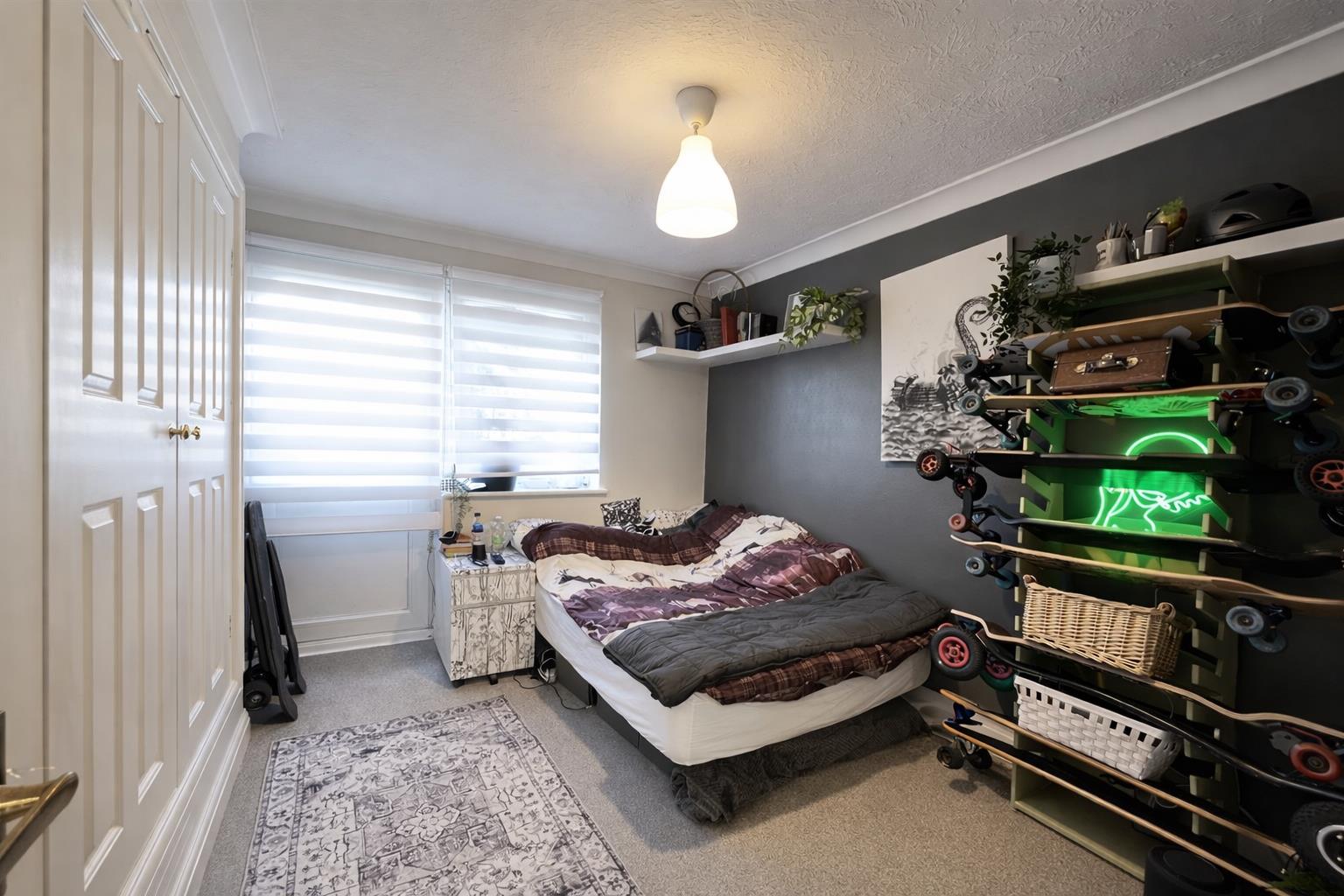 Double glazed window to rear aspect, carpet, single panel radiator, built-in wardrobe, coved ceiling.