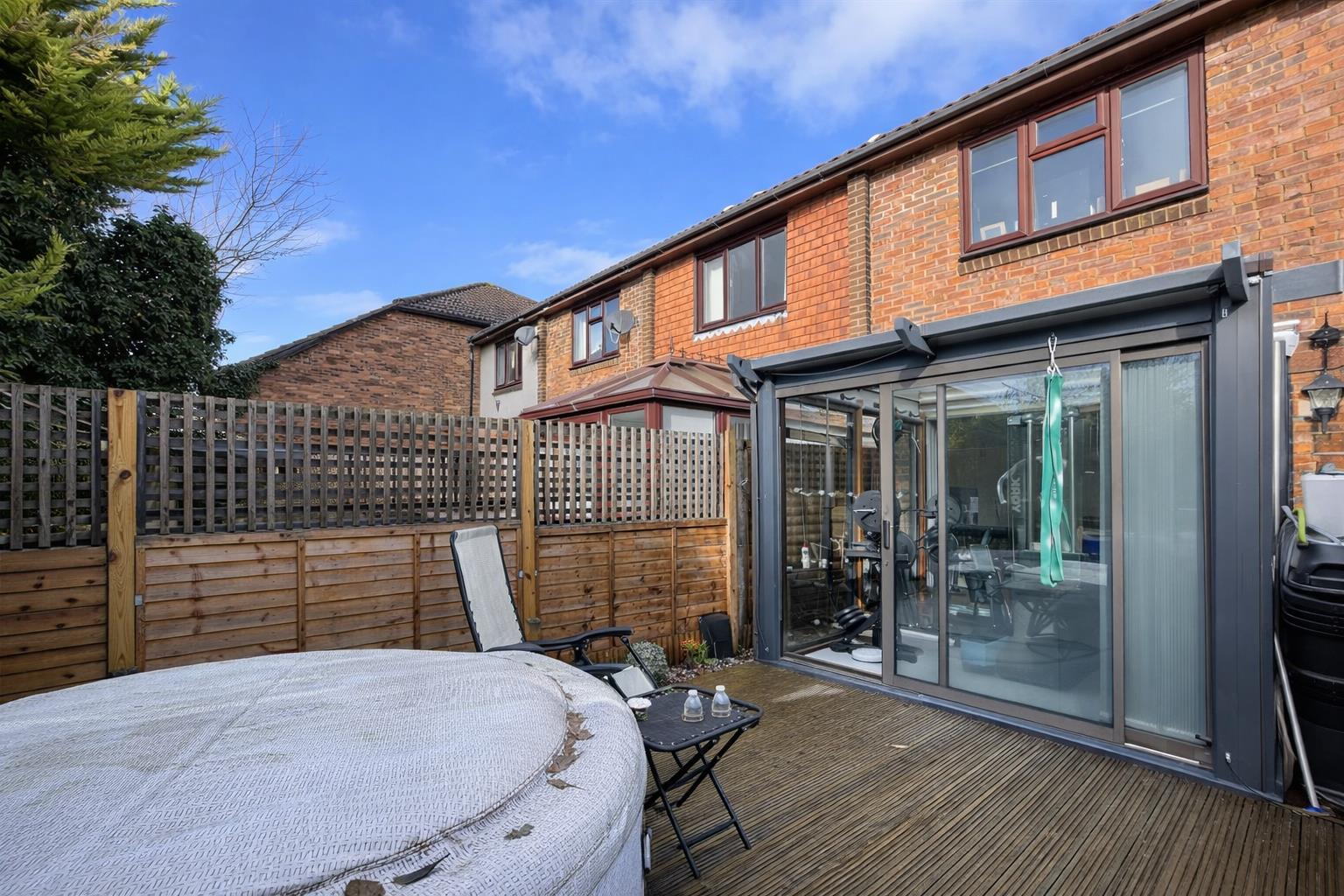 NO ONWARD CHAIN Nestled in the picturesque Alpine View, Carshalton, this charming two-bedroom end terrace house is a delightful find for those seeking a modern home in a prime location. Inspired by the elegance of a ski lodge, this freehold property is situated within a desirable private gated development, offering both security and a sense of community.Upon entering, you are greeted by a contemporary kitchen that flows seamlessly into a spacious lounge, creating an inviting space for relaxation and entertaining. The property boasts a sleek bathroom and a convenient downstairs WC, ensuring practicality for everyday living. A sunlit conservatory enhances the living area, allowing natural light to fill the home and providing a perfect spot to enjoy the garden views.The two generously sized double bedrooms offer ample space, with one featuring its own private balcony, ideal for enjoying a morning coffee or unwinding in the evening. The well-maintained rear garden serves as a peaceful escape, perfect for outdoor gatherings or quiet moments.Parking is a breeze with allocated off-street parking for one vehicle, along with additional guest parking available plus a private garage.. The location is superb, with both Carshalton Beeches and Carshalton Mainline Railway stations just a short distance away, making commuting effortless. For those who prefer public transport, various bus routes to Sutton, Carshalton, Wallington, Croydon, and Morden are easily accessible.The vibrant local area is rich with amenities, including shops, cafes, and restaurants, as well as the beautiful green spaces of The Grove and Carshalton Park, perfect for leisurely strolls. Residents of Alpine View also enjoy the luxury of an onsite gym and sauna room, adding a touch of indulgence to daily life.This exceptional property is a true gem waiting to be discovered. We invite you to arrange a viewing and experience the charm of Alpine View.