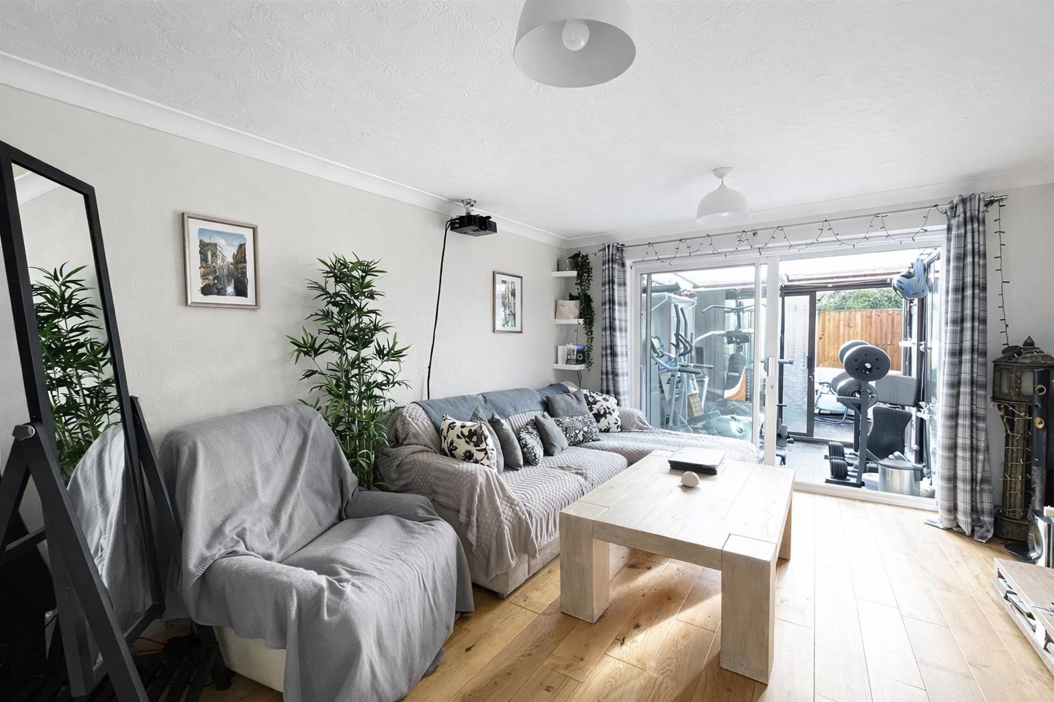 Double glazed sliding doors to rear aspect, wood effect flooring, radiator, coved ceiling.