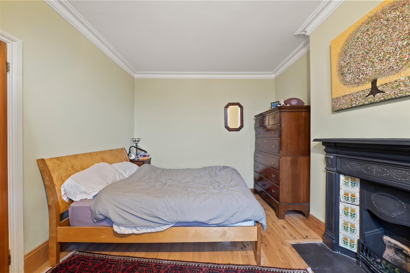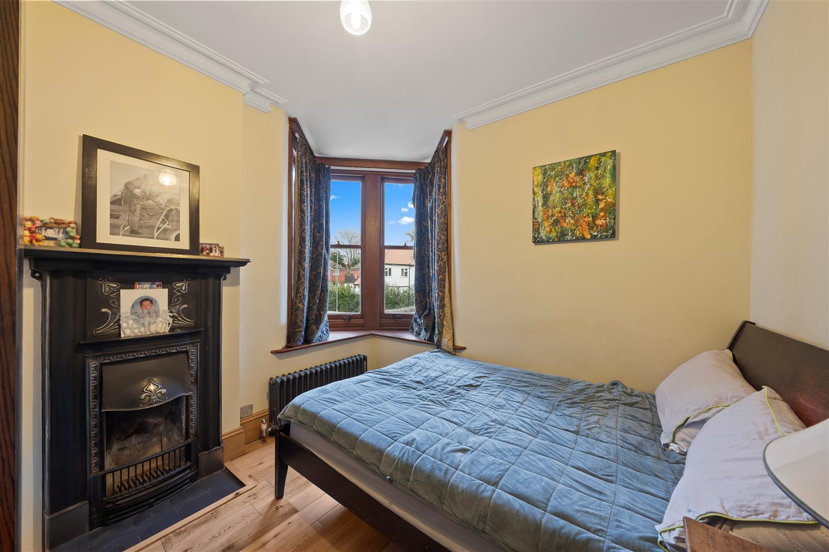Built in cupboard, cast iron fireplace, radiator, wood flooring, double glazed sash bay window to front aspect.