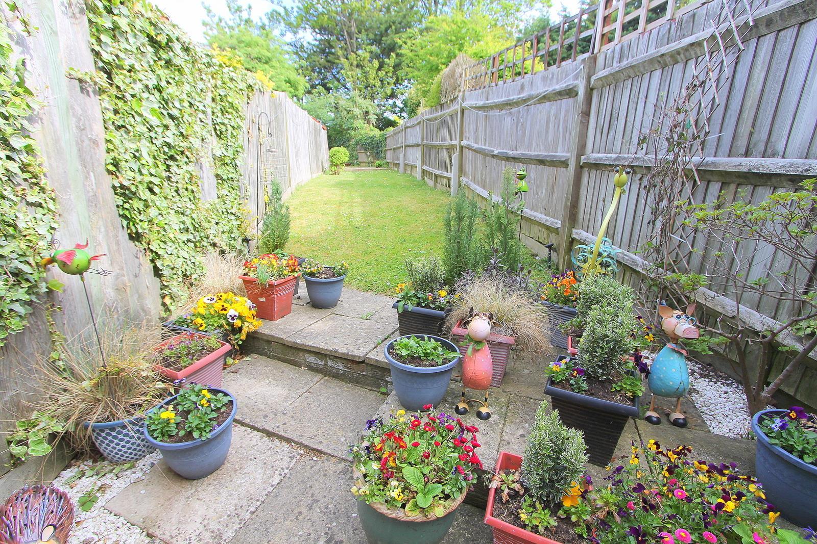 Long garden approximately 100ft in length, mainly laid to lawn with patio area and further wider patio and shingle area to rear of garden, garden shed, outside tap, fence enclosed with side access.