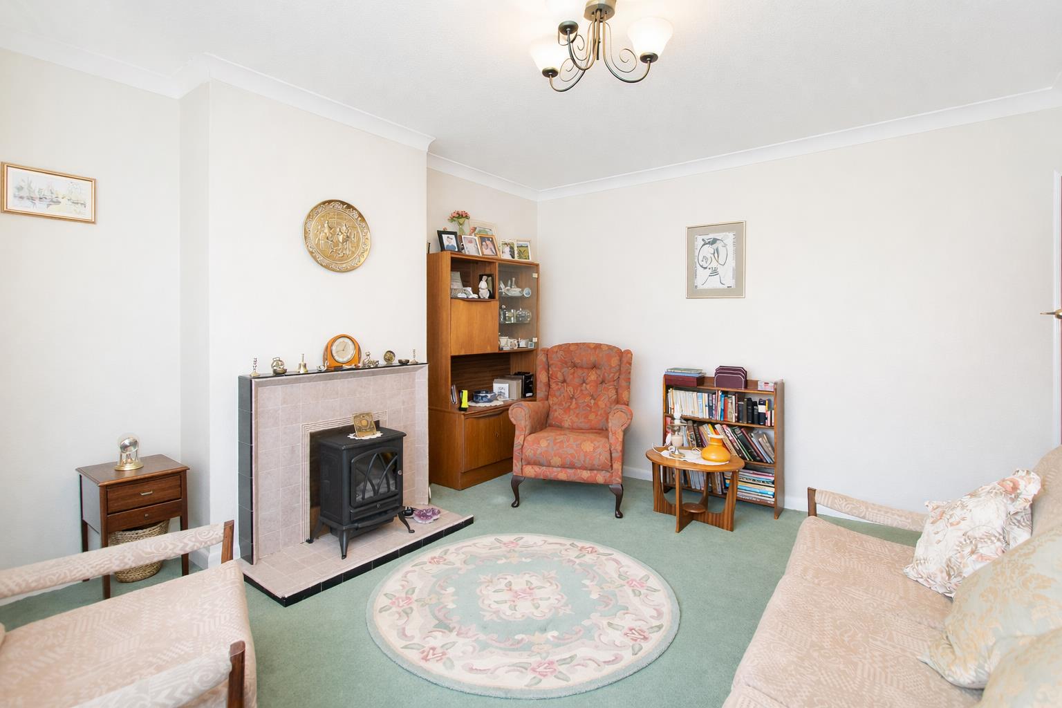 UPVC double glazed window to front aspect, wall mounted heater, fireplace with tiled surround.