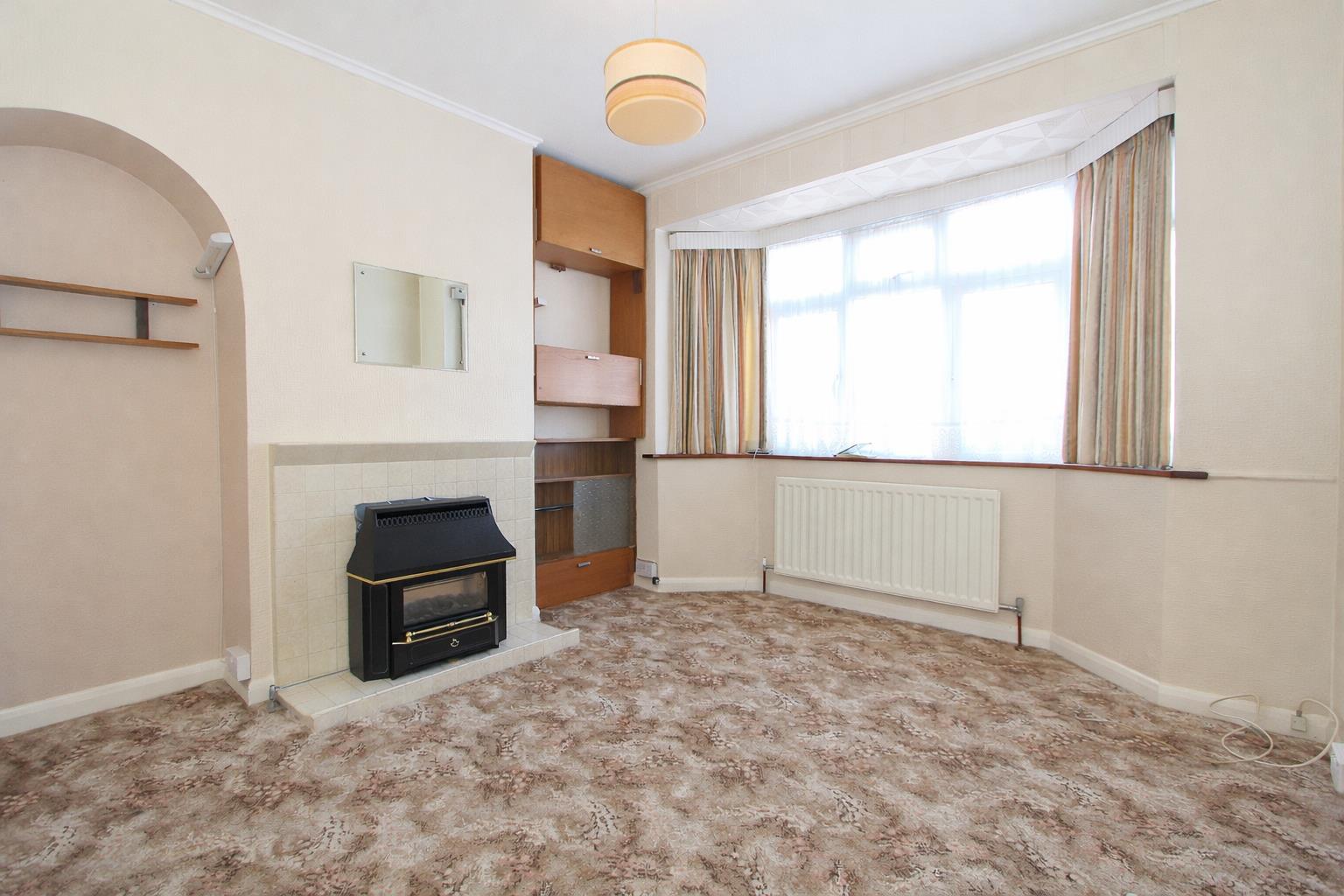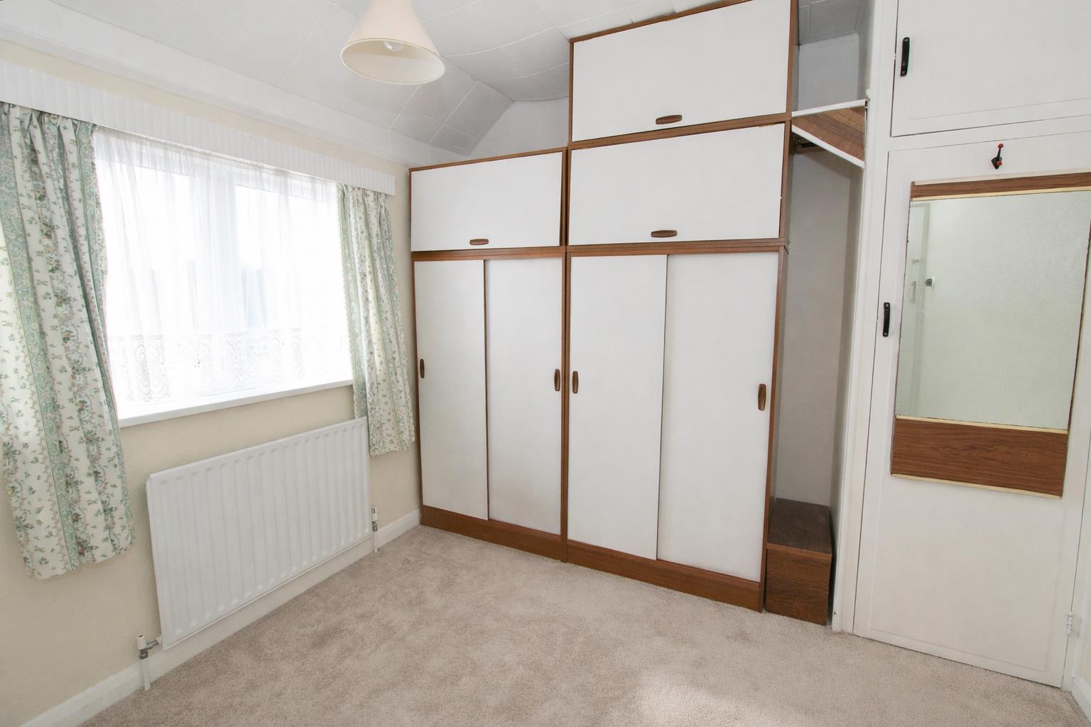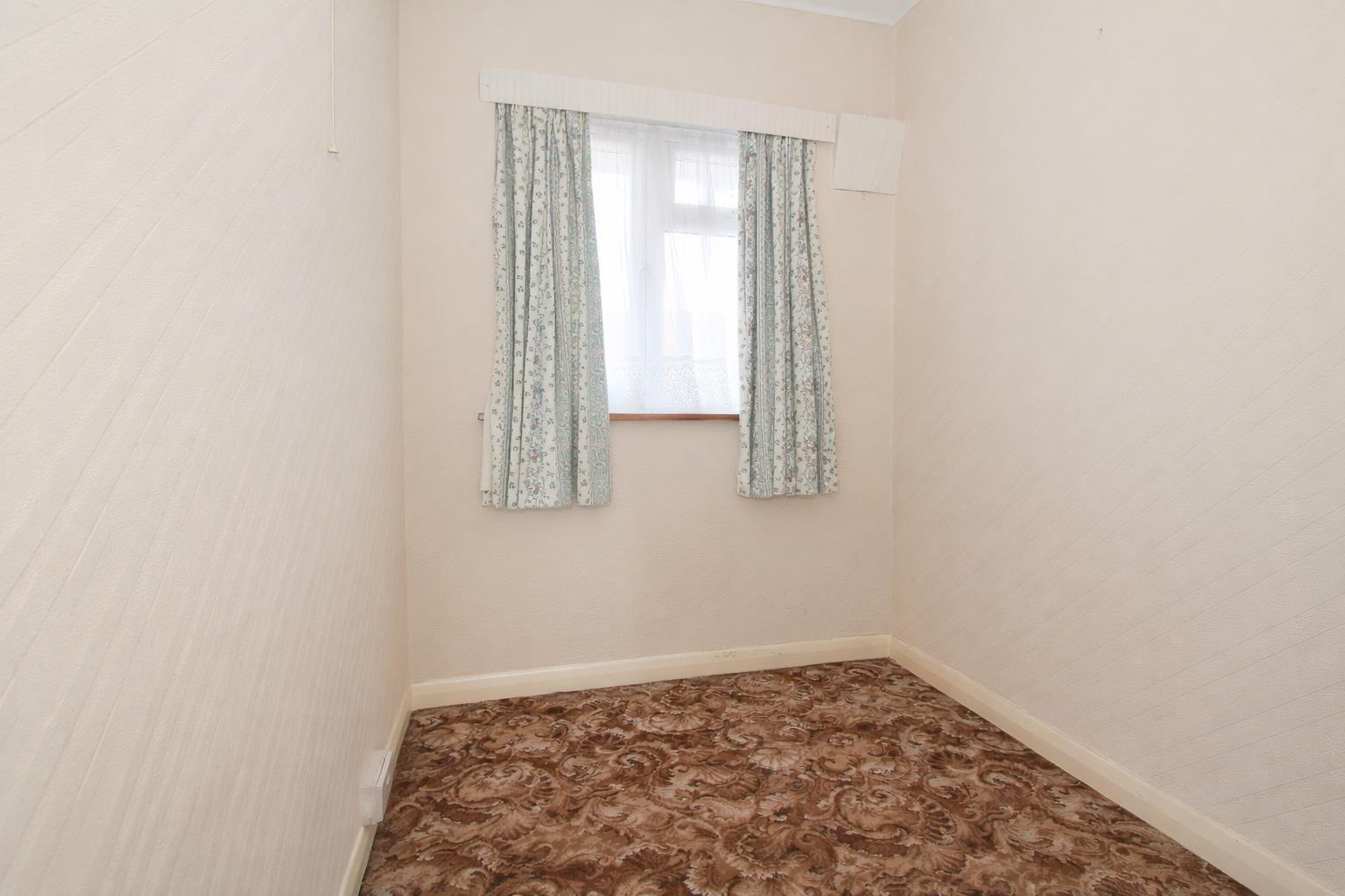 UPVC double glazed bay window to front aspect, single panel radiator, fireplace, fitted shelving unit.