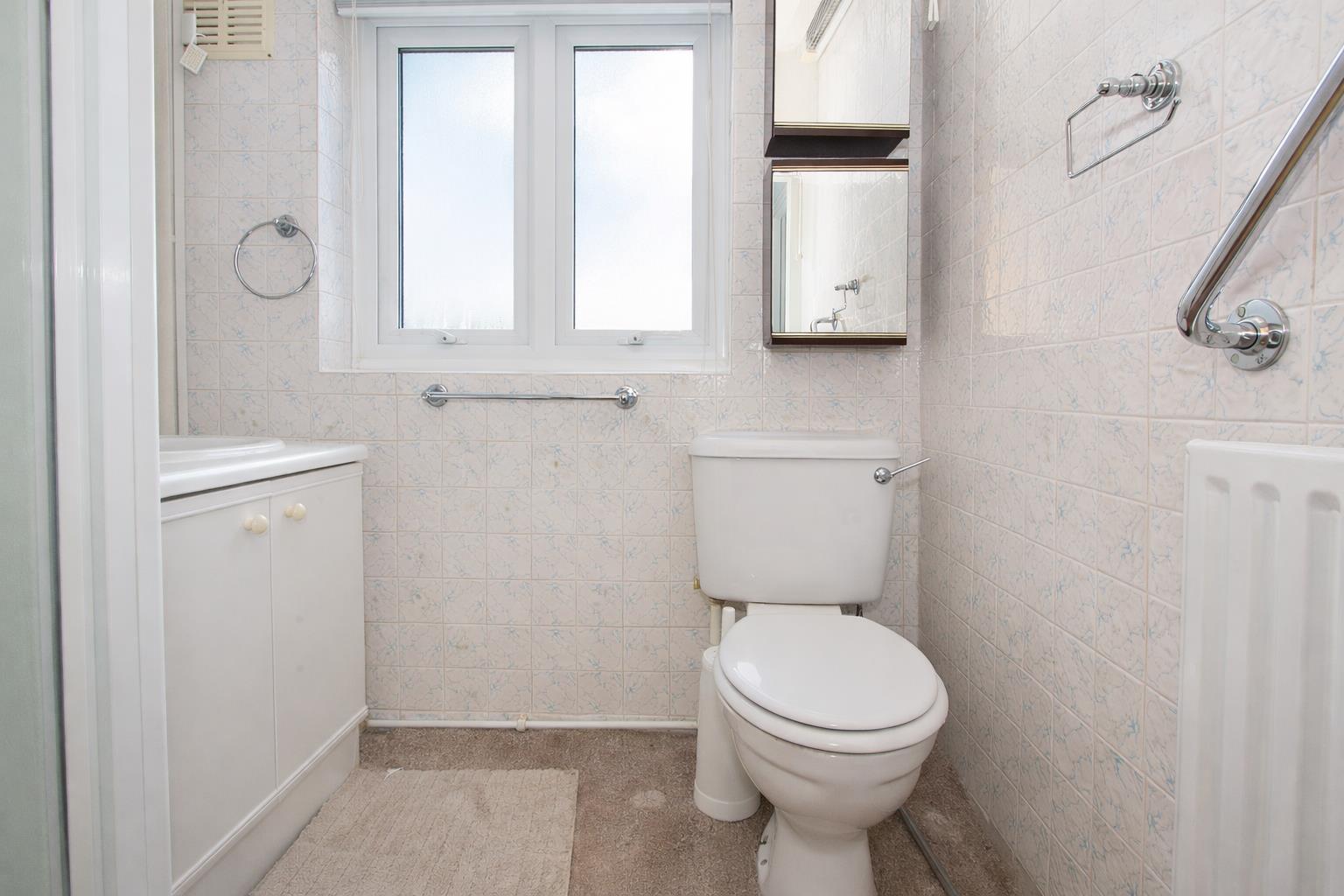 Consisting of tiled cubicle with thermostatic shower, wash hand basin with chrome taps, low-level flush WC, tiled walls, wall mounted heater, obscure UPVC double glazed window to rear aspect.