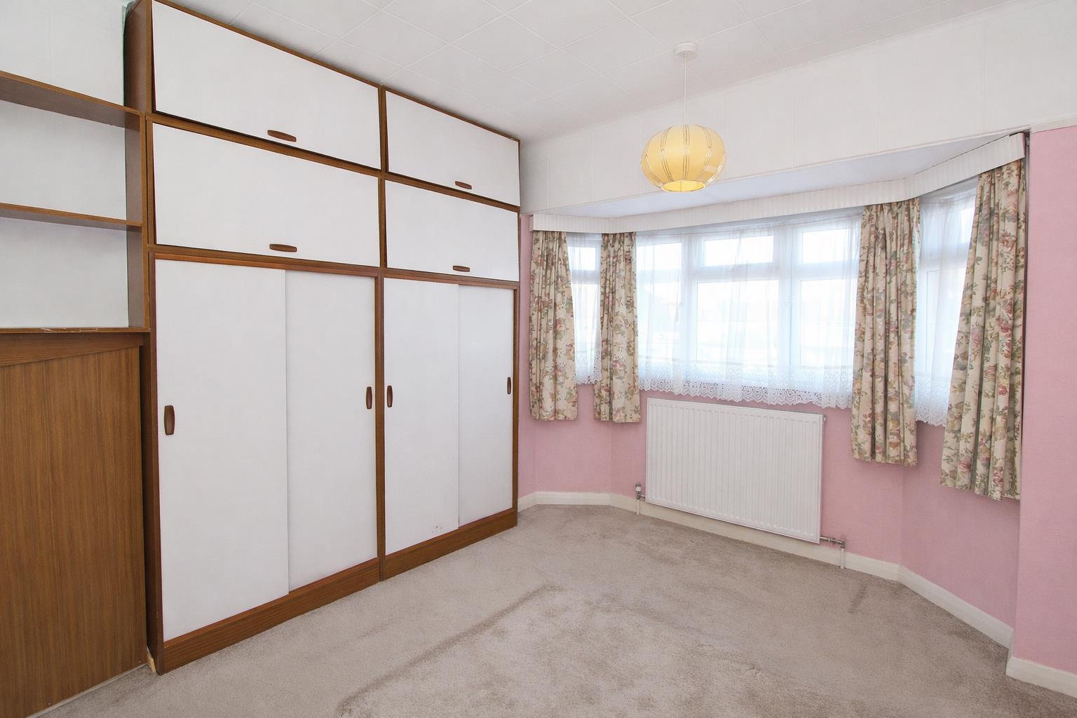 UPVC double glazed bay window to front aspect, single panel radiator, fitted wardrobe, picture rail.