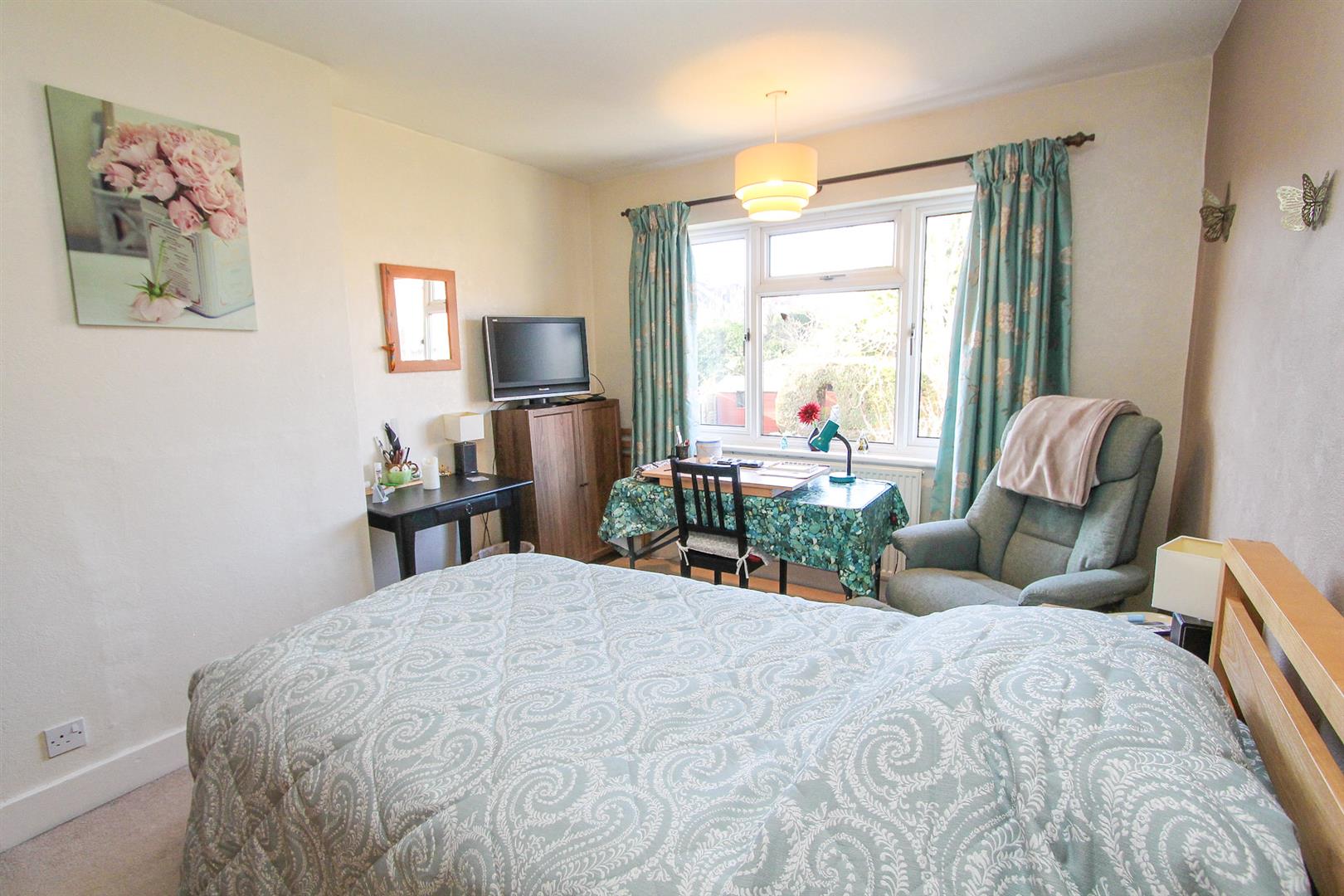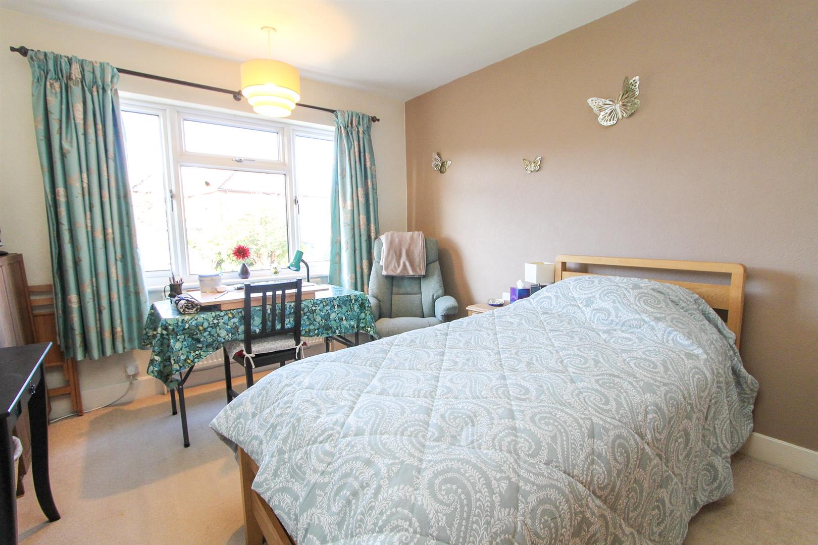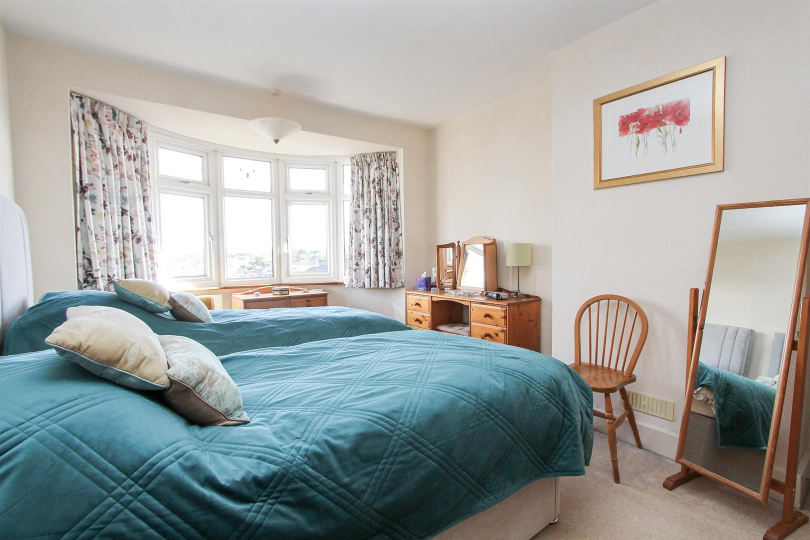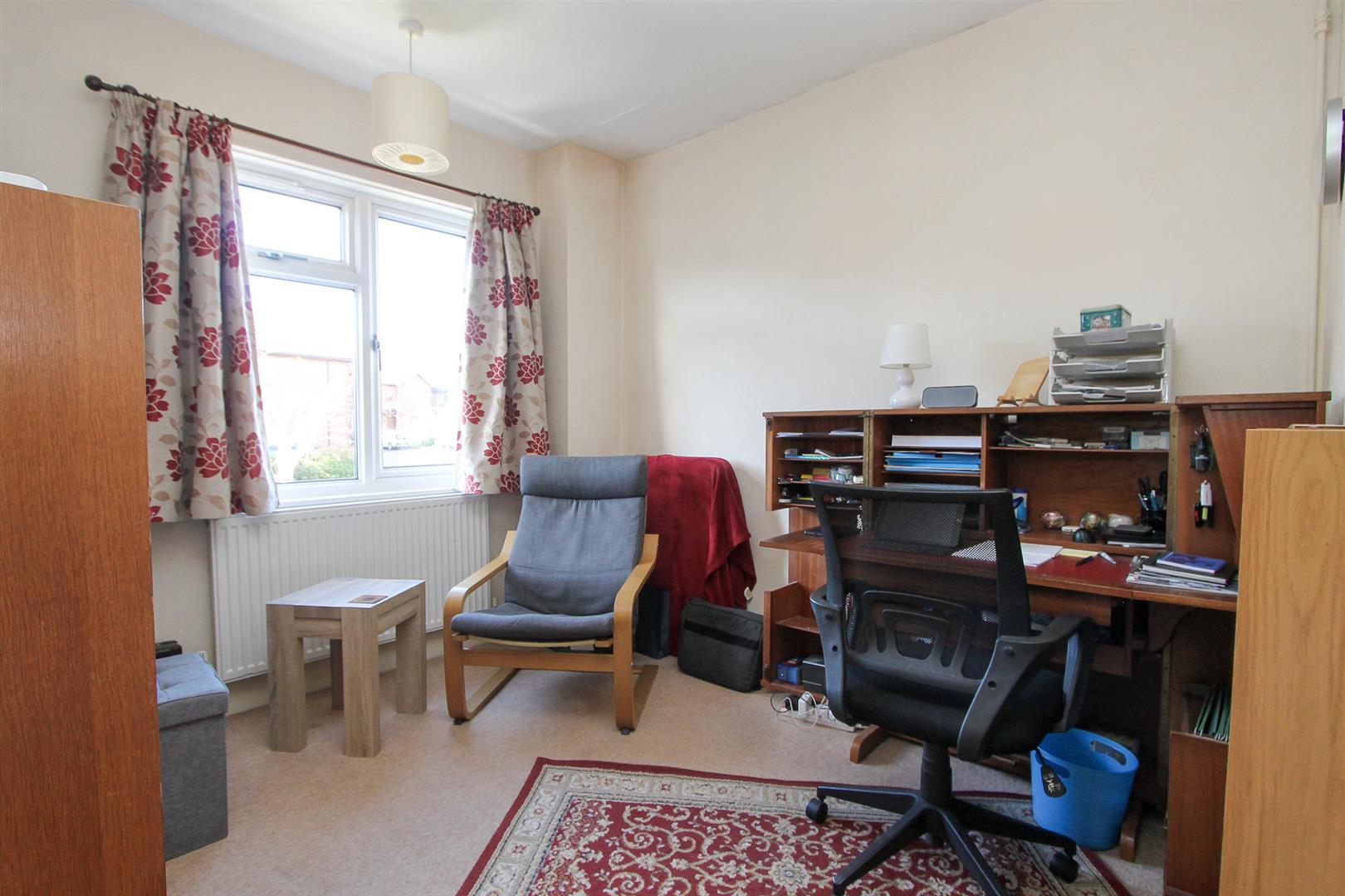 Electric fireplace, radiator, fitted carpet, UPVC double glazed bay window to front aspect .