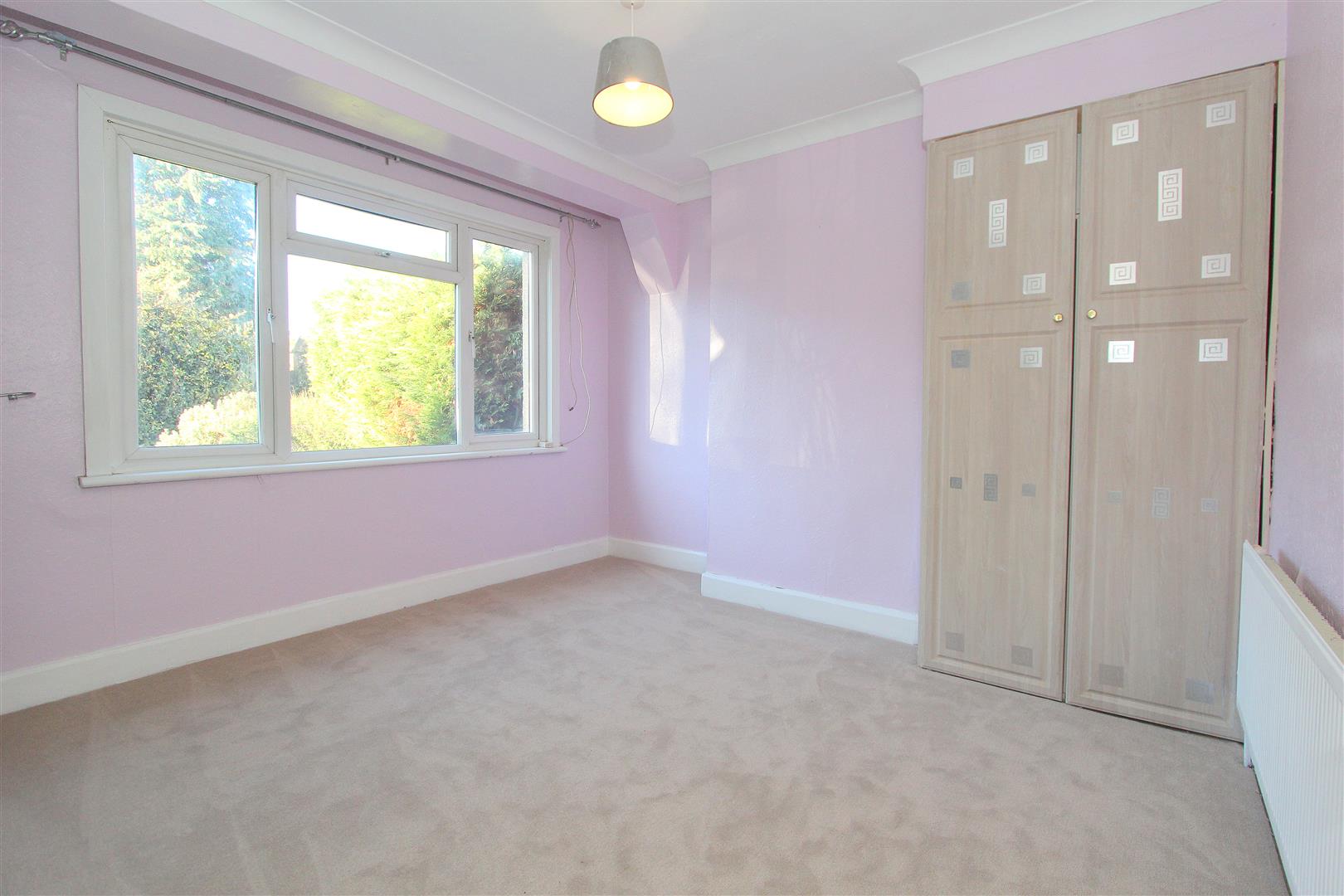 UPVC double glazed window to front aspect, single panel radiator, coved ceiling, built in storage cupboard with hanging rail.