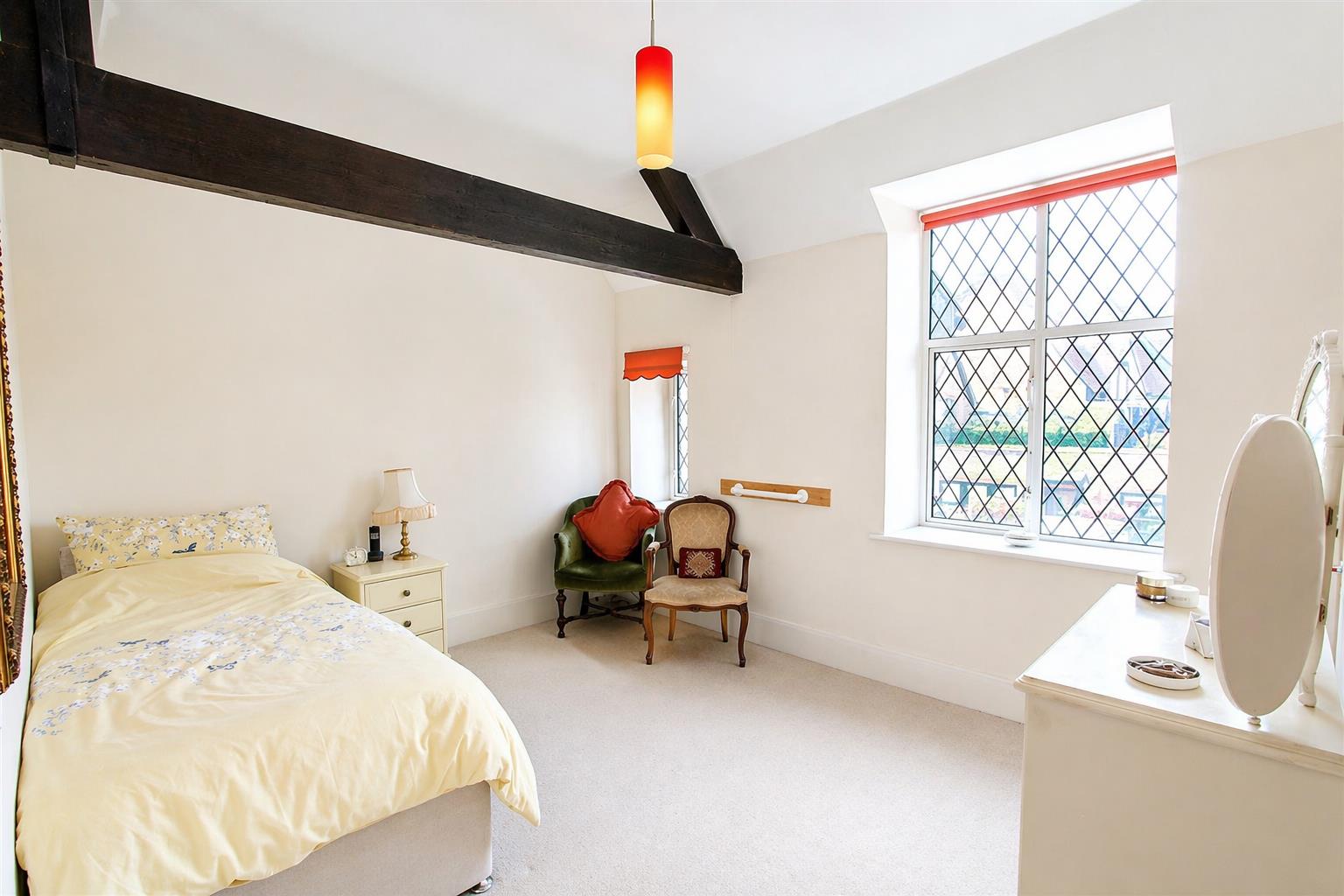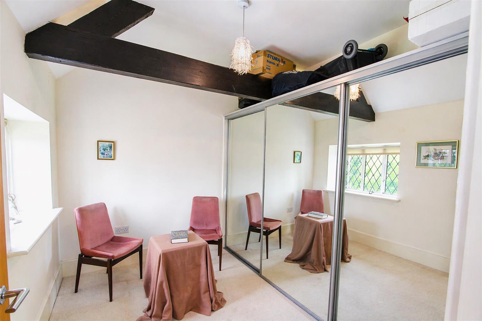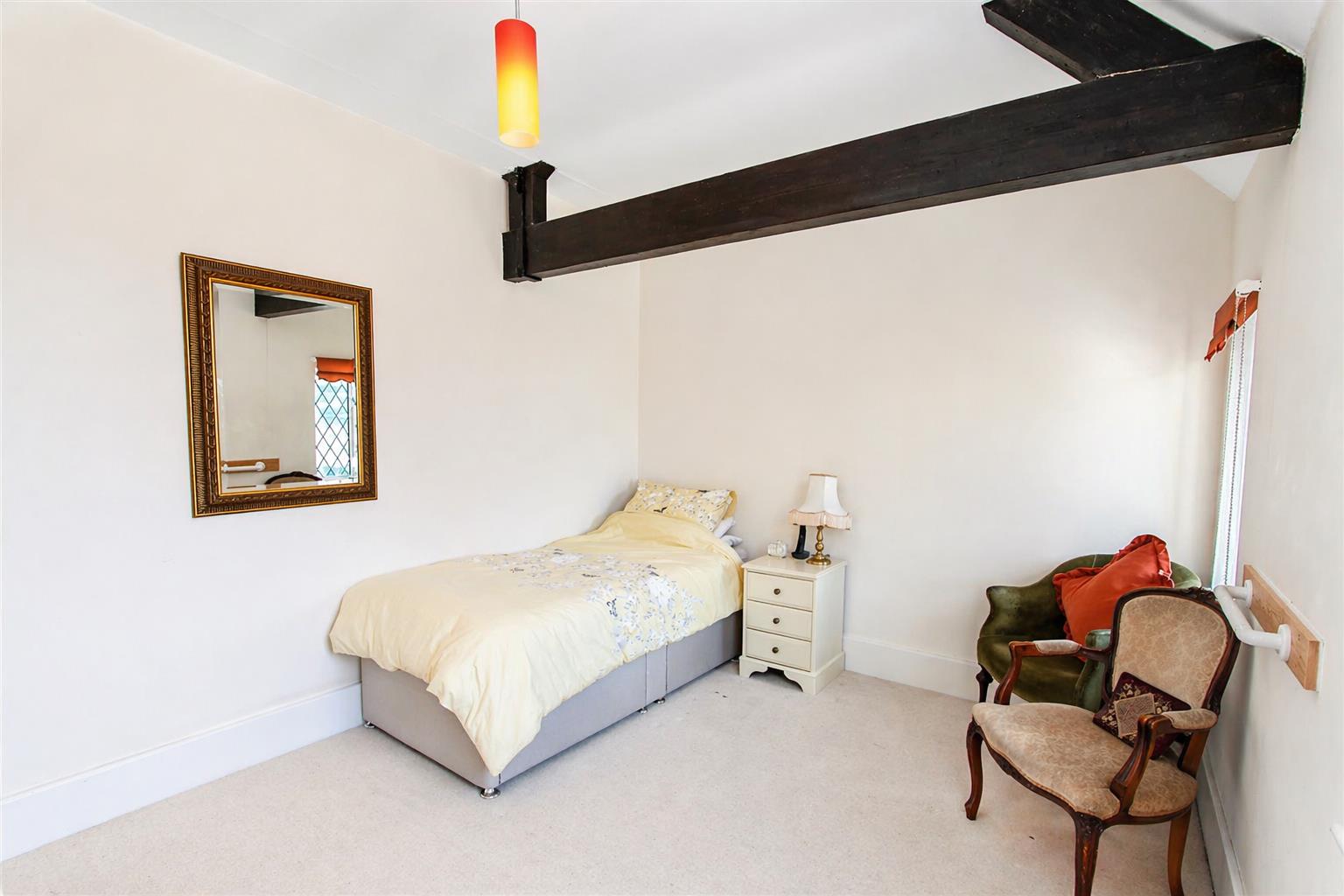 Radiator on the right-hand wall, large window to the front of the property, as well as a smaller window to the left-hand side, the room features a beamed ceiling and provides direct access to the en suite.