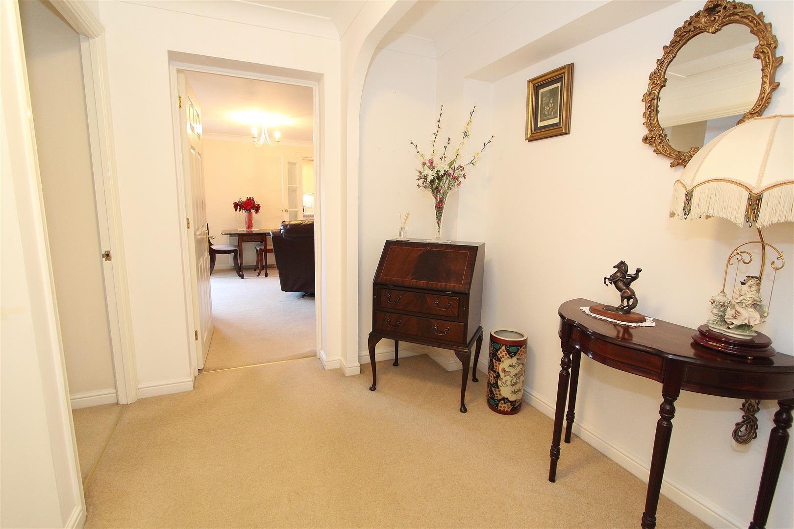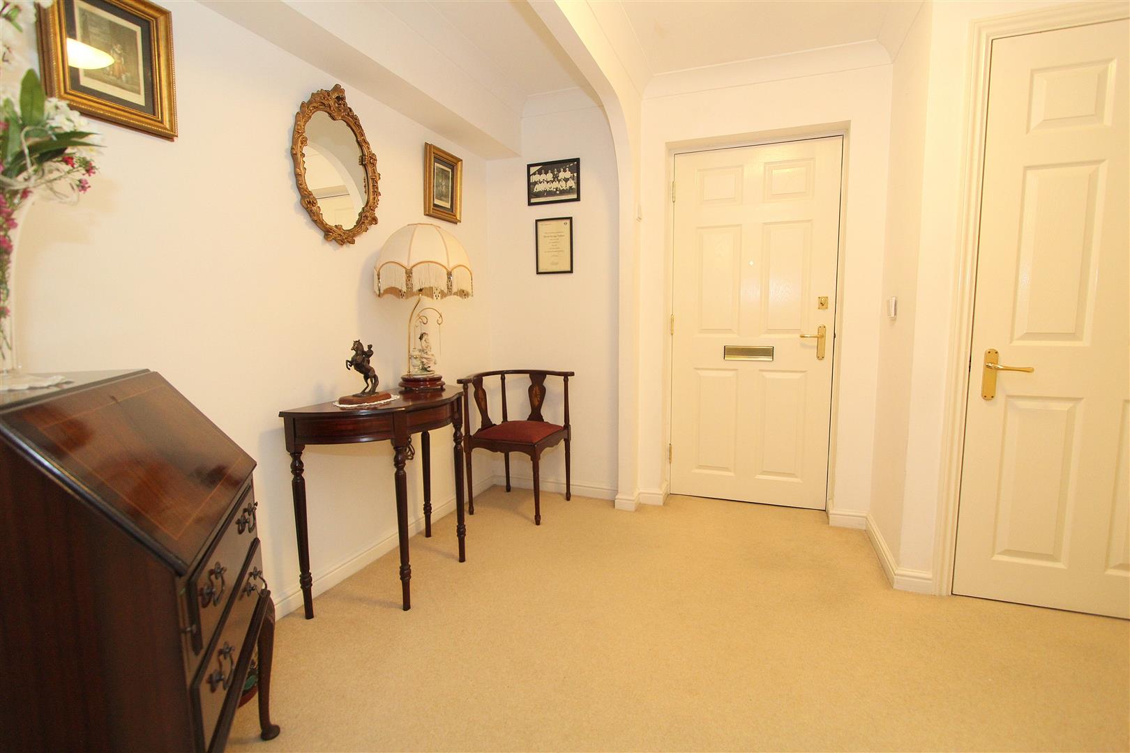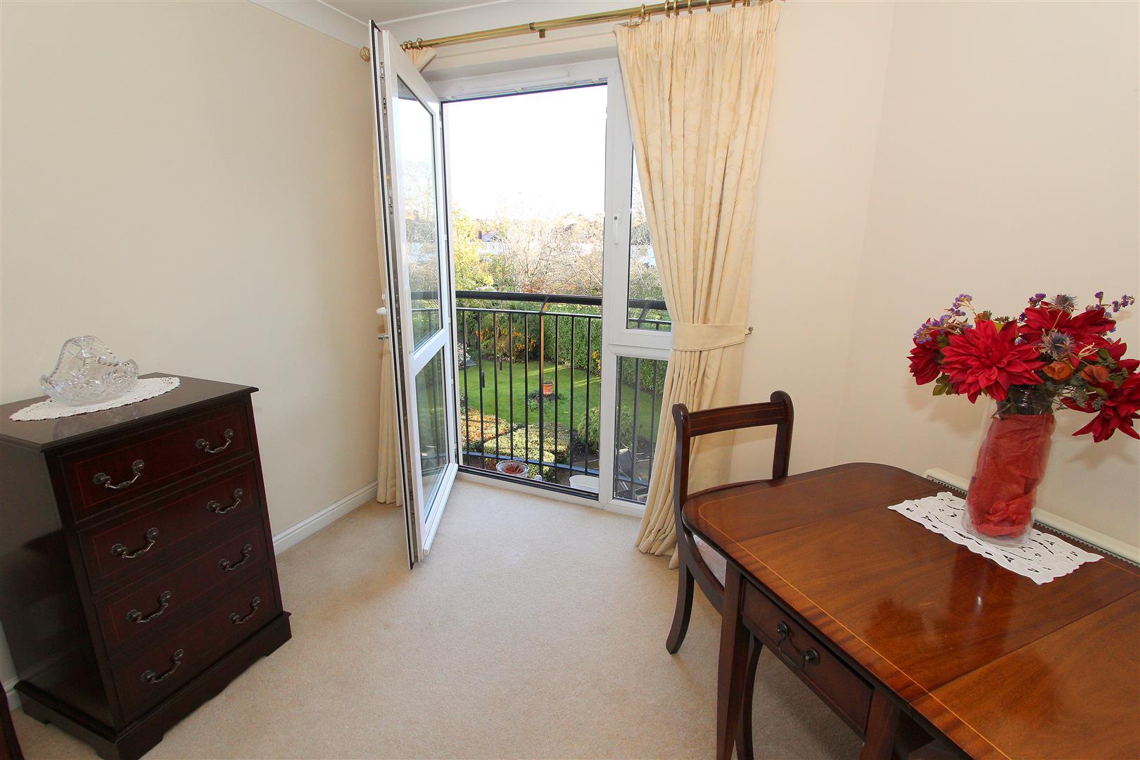 UPVC double glazed window and door to rear aspect overlooking well kept communal grounds with Juliet balcony, coved ceiling, wall mounted emergency alarm cord fireplace, wall mounted heater, obscured double wooden doors leading to..
