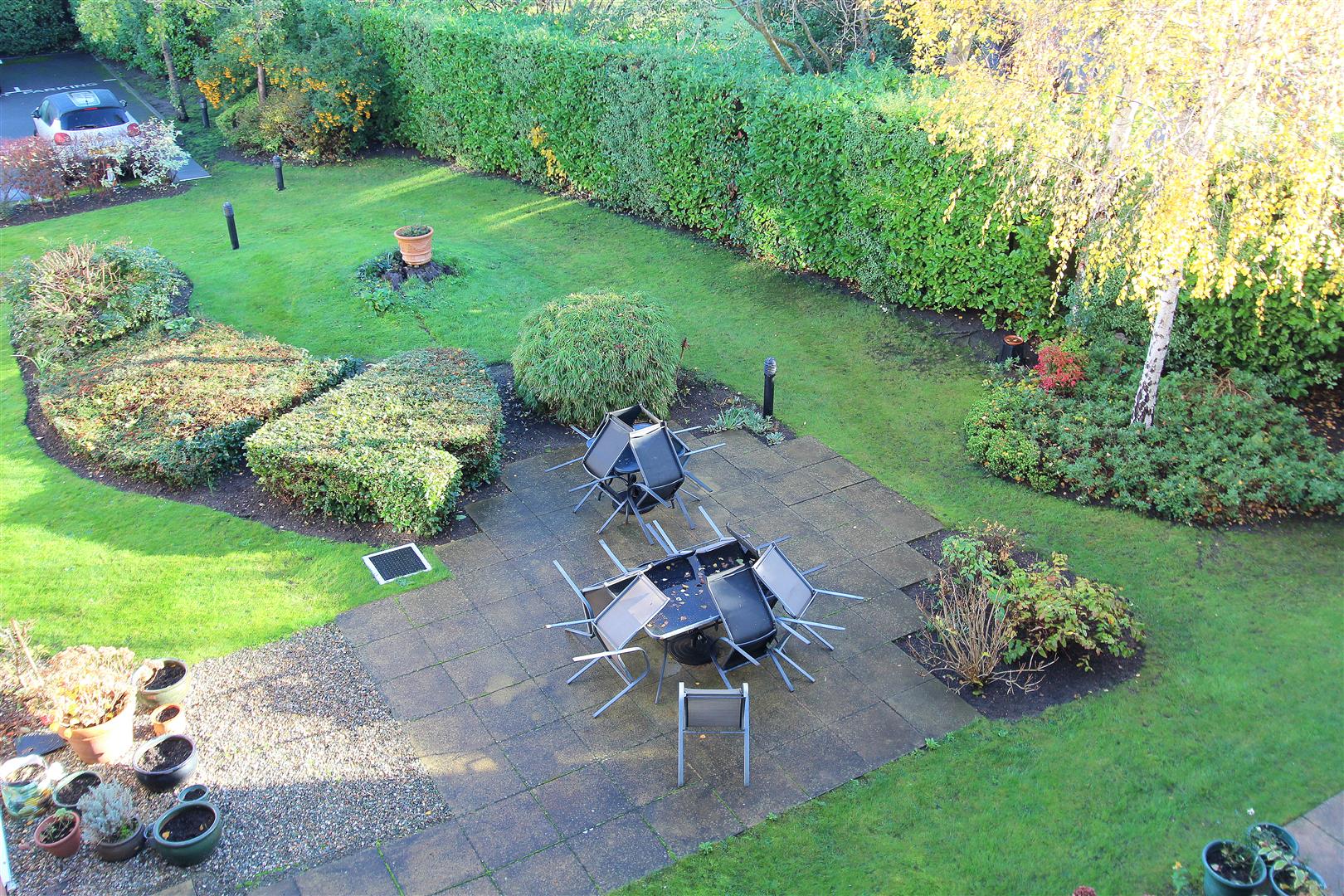 Well kept communal grounds with mature shrubs and plants bordering, large paved patio area and access to residents parking.