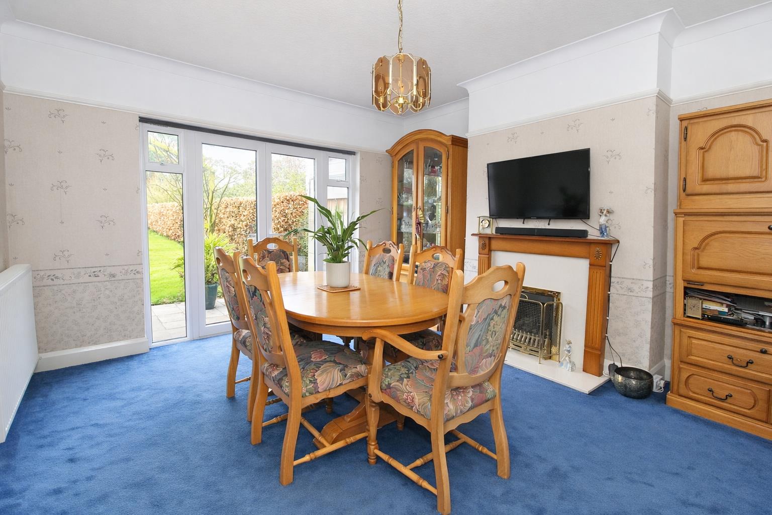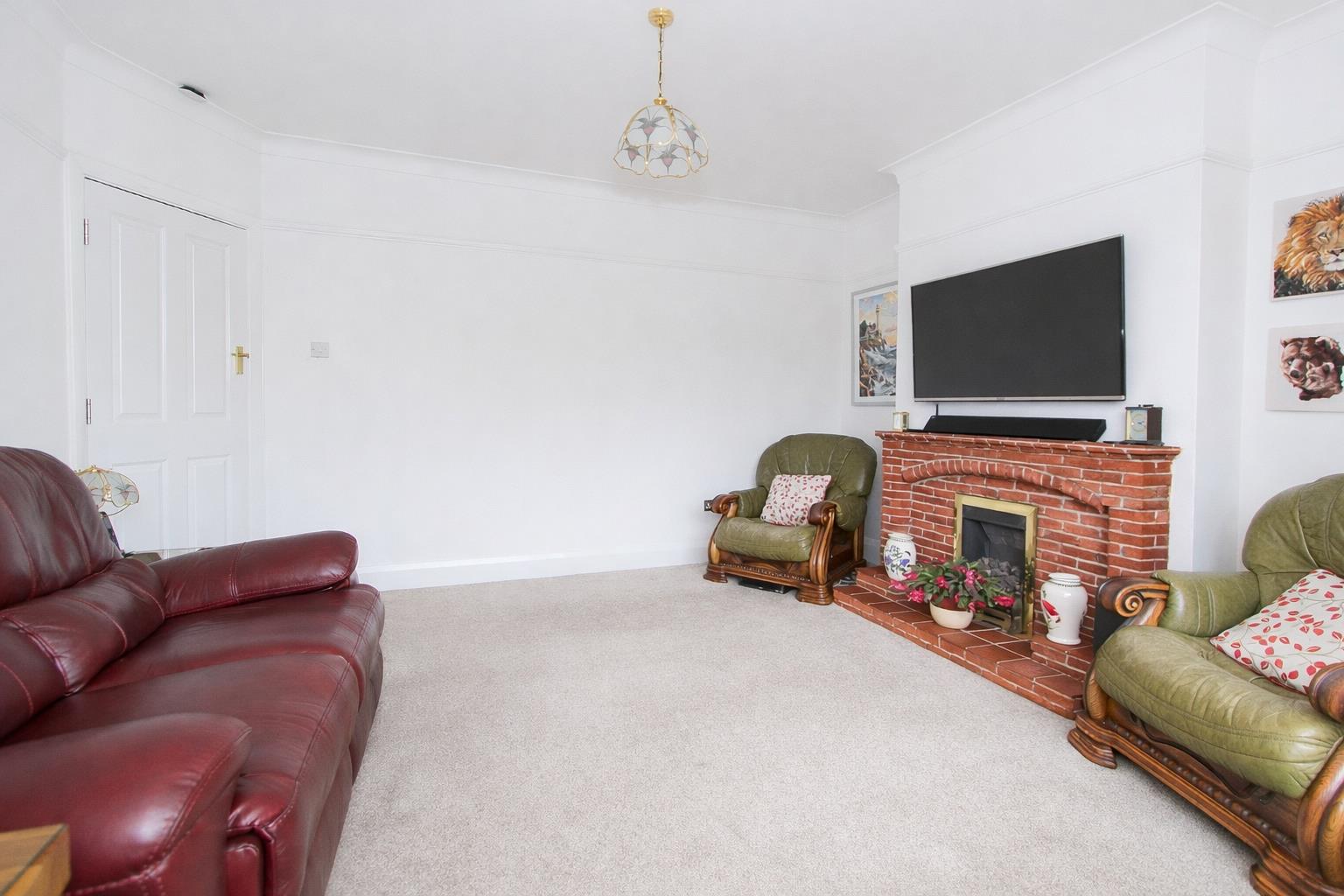 UPVC double glazed patio doors to rear aspect, double panel radiator, fireplace with wooden mantle piece, picture rail, coved ceiling.
