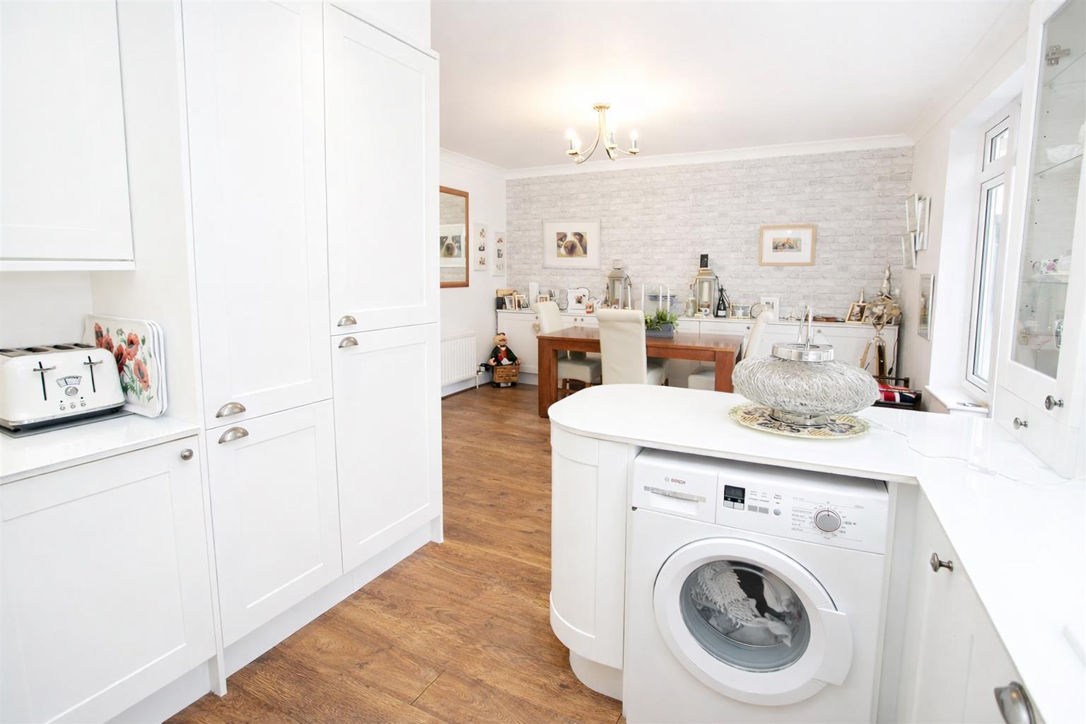 This property has been updated by the present owners to include a modern kitchen dining room with fitted units complete with Quartz effect work surfaces, integrated fridge, freezer and dishwasher and stainless steel fitted oven, gas, hob, and extractor cooker hood. This lovely space opens out onto a large conservatory with fantastic views of the wide garden, which in itself has been landscaped to include an Indian sandstone, patio, large lawn area, and raised flower borders, as well as mature hedging. The separate lounge to the front has a modern feel and is an ideal space to settle down and retire to in the evening.