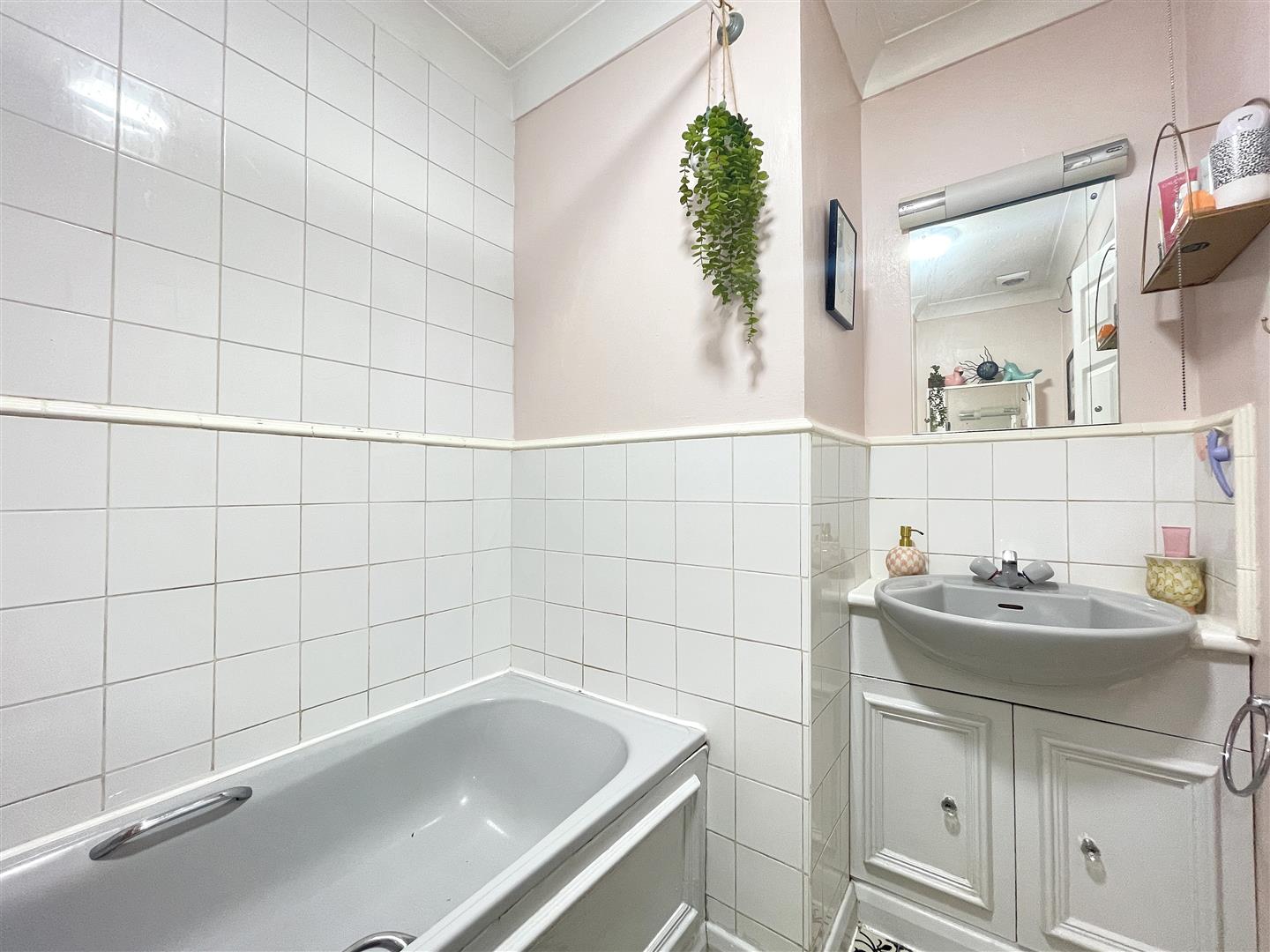 Consisting of low-level push button flush WC, wash hand basin with chrome mixer tap, single panel radiator, obscured double glazed window to front aspect, coved ceiling, tiled flooring.