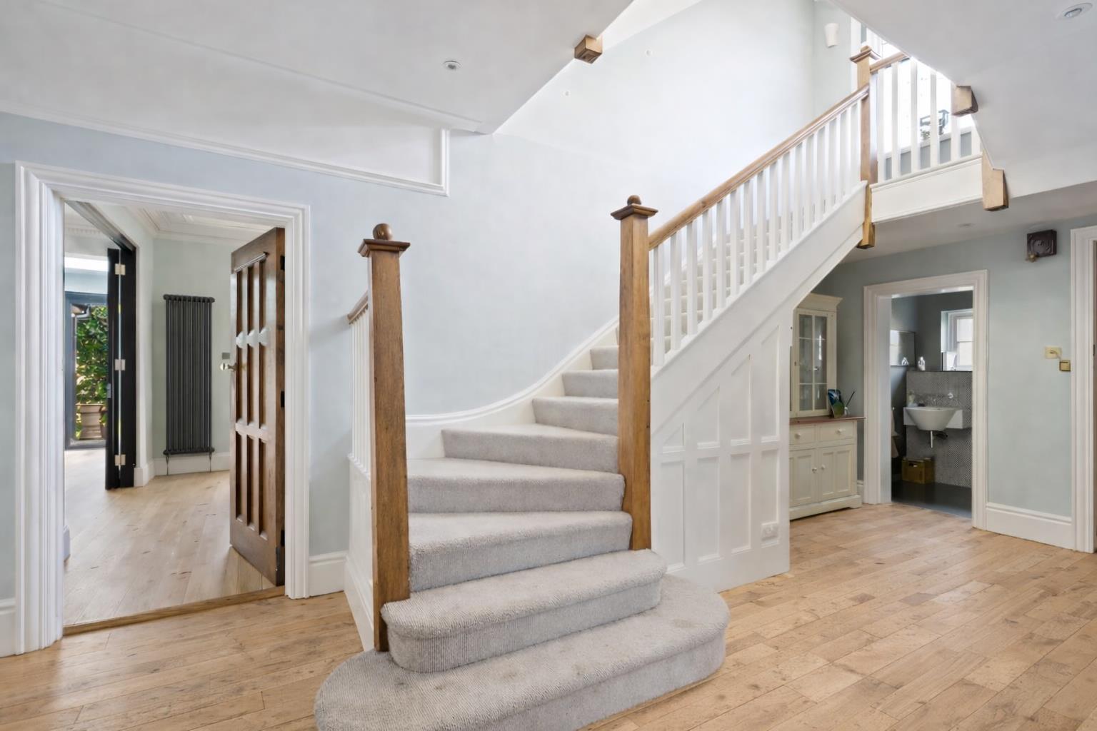 The upper floors provide the family with extra large bedrooms and luxury bathrooms. The first floor offers the main bedroom with en-suite dressing room and bath/shower room, whilst a family bathroom serves the remaining bedrooms on this floor. The house was built with live-in staff in mind and so the second floor offers further living space; however, this is now just as well appointed and modern as the rest of the house with two extremely spacious bedrooms both with luxury en-suite.