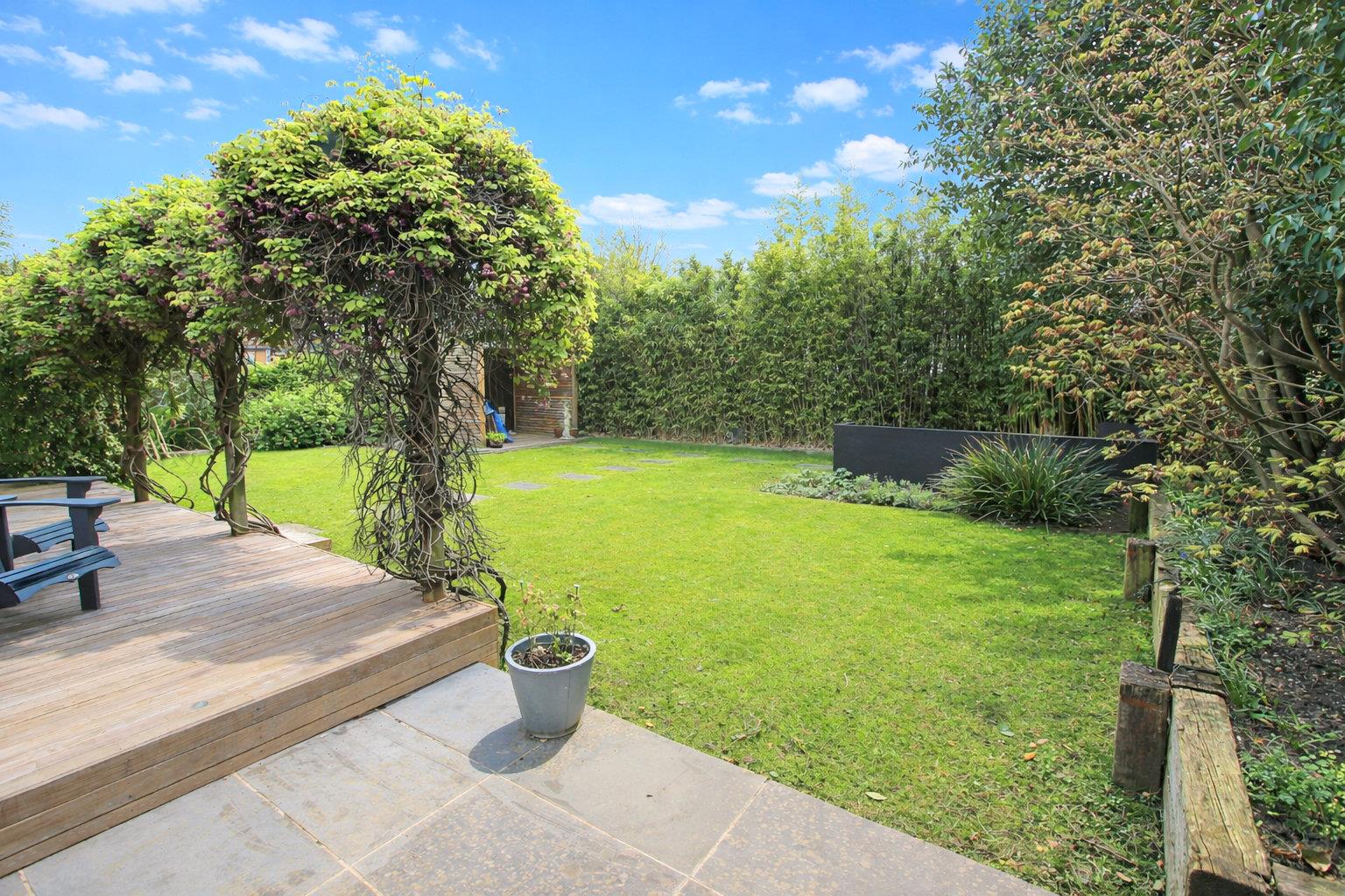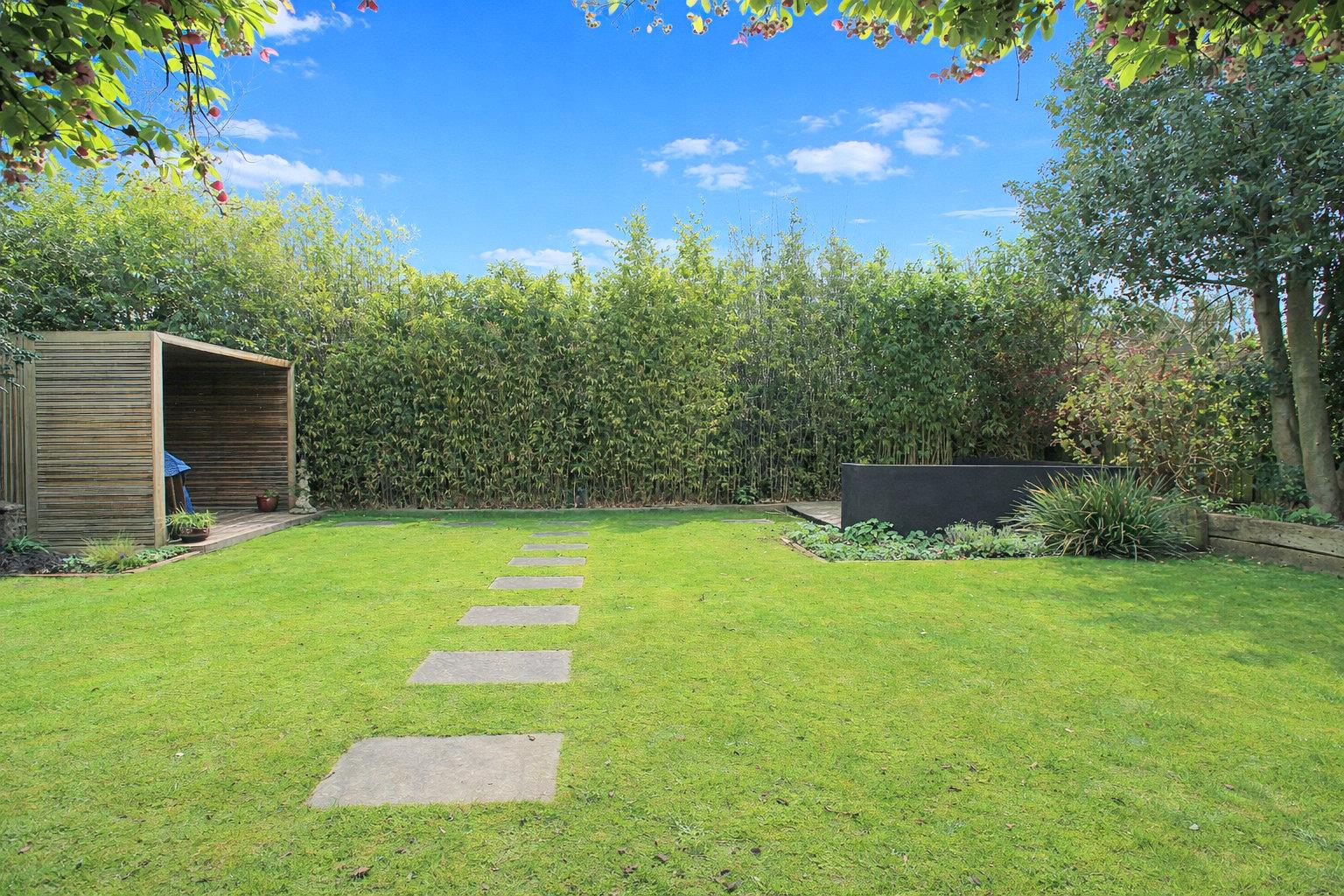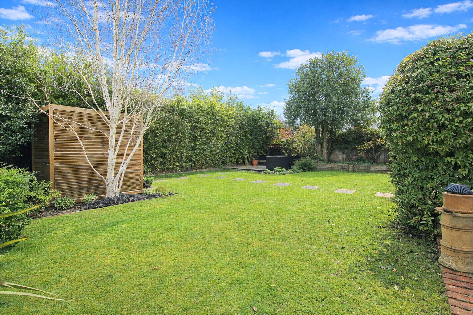 Externally, the rear garden is laid to lawn with surrounding trees and shrubs providing sought after privacy and in the summer months a lush backdrop. Measuring approximately 43ft x 63ft the garden is of a manageable size ideal for relaxing and entertaining.