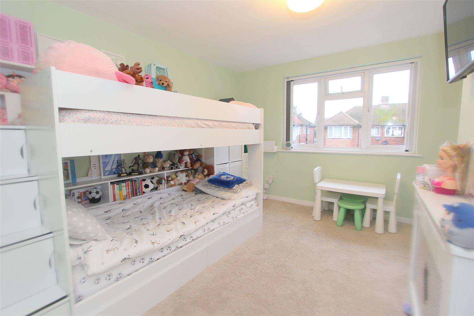 UPVC double glazed window to front aspect, double panel radiator, fitted wardrobes and dressing table, fitted black out blinds.