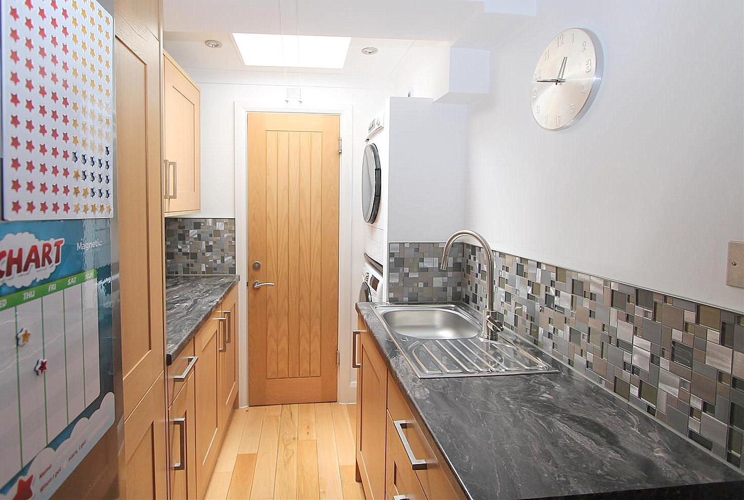 Grey wooden effect porcelain tiled flooring with underfloor heating