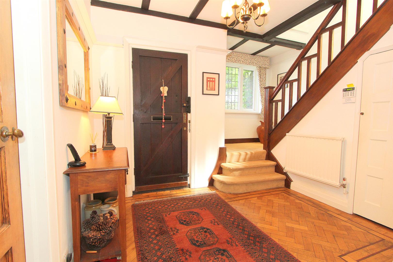 Herringbone parquet flooring, double panel radiator, large under stairs storage cupboard, wall mounted alarm panel, mock Tudor beams, plate rack.