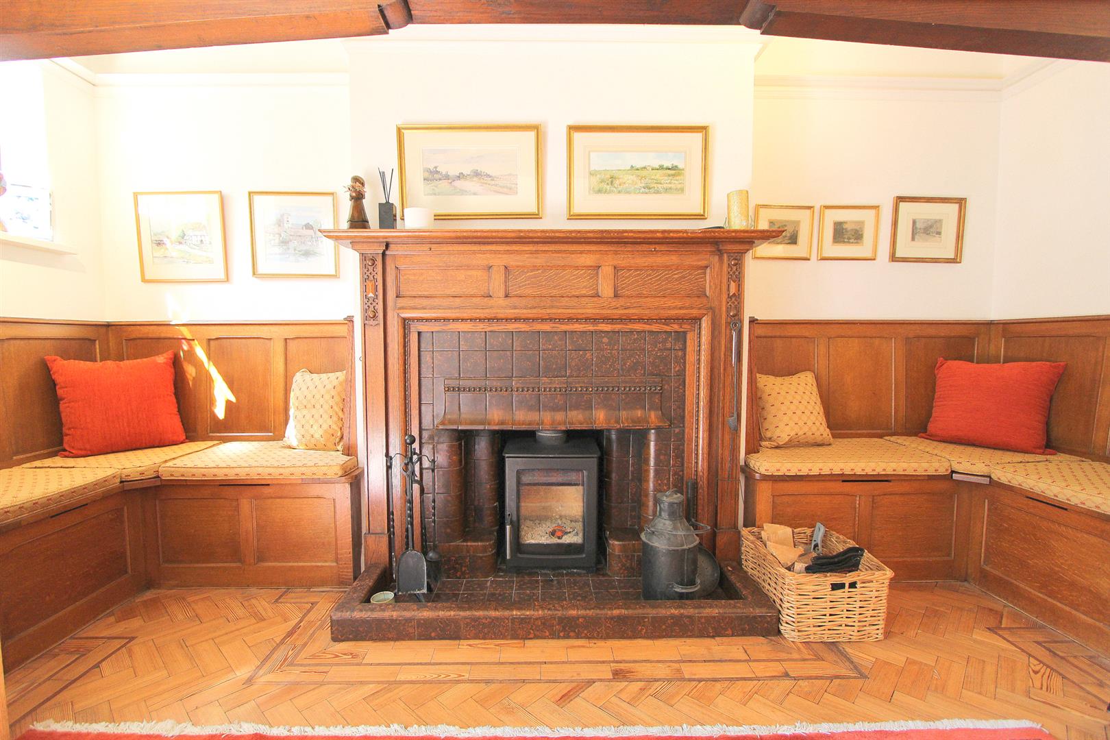 UPVC double glazed leaded light windows and doors to rear aspect, feature Inglenook fireplace, beamed ceiling, plate rack, herringbone parquet flooring, double panel radiator.