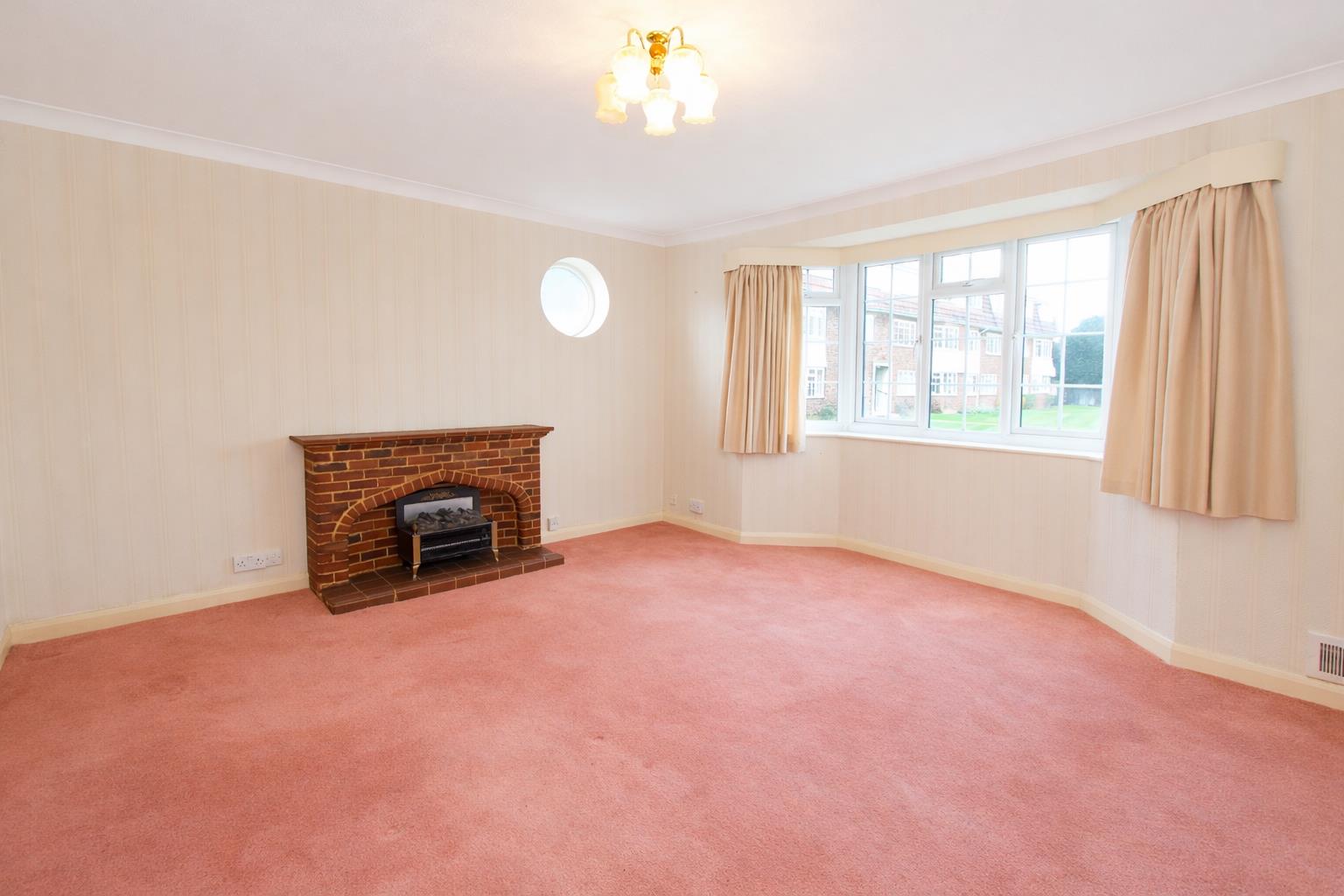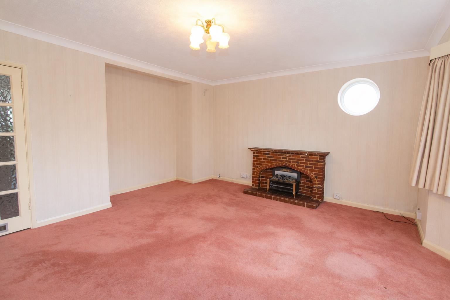 UPVC double glazed bay window to front aspect and feature port hole window at side, fireplace with brick surround