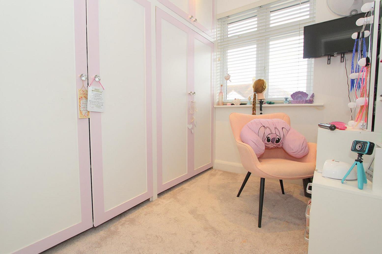 UPVC double glazed doors to rear, Juliet balcony, large Velux window to front aspect, built in eaves storage and fitted wardrobes, wall mounted air-conditioning unit.
