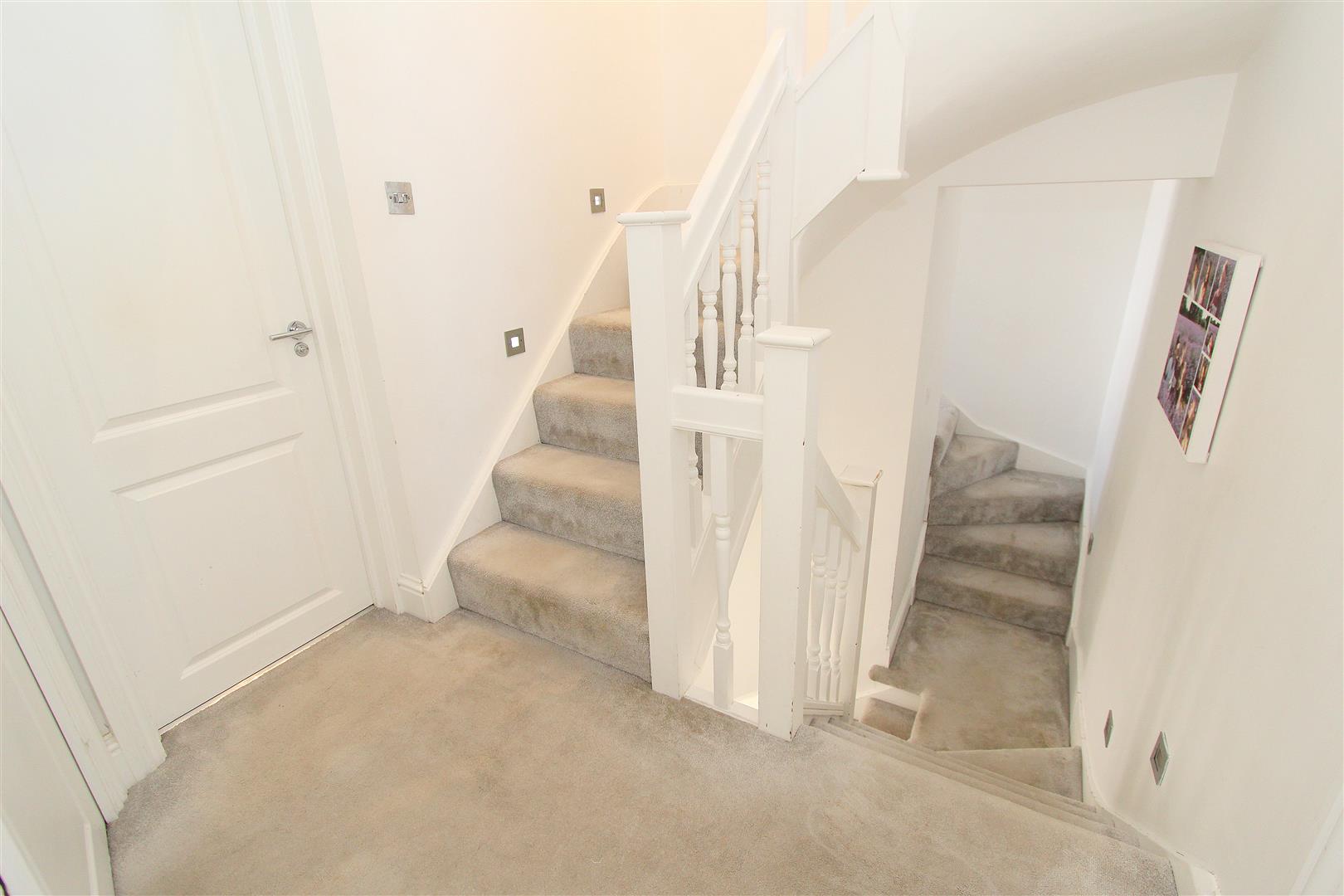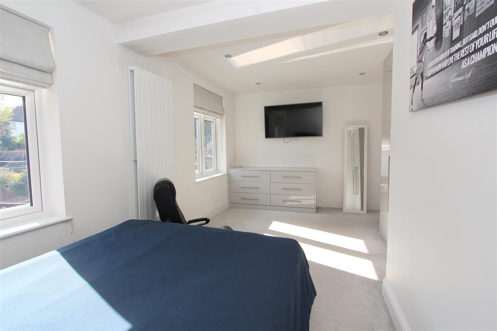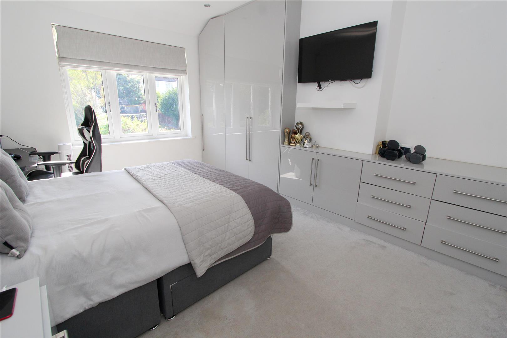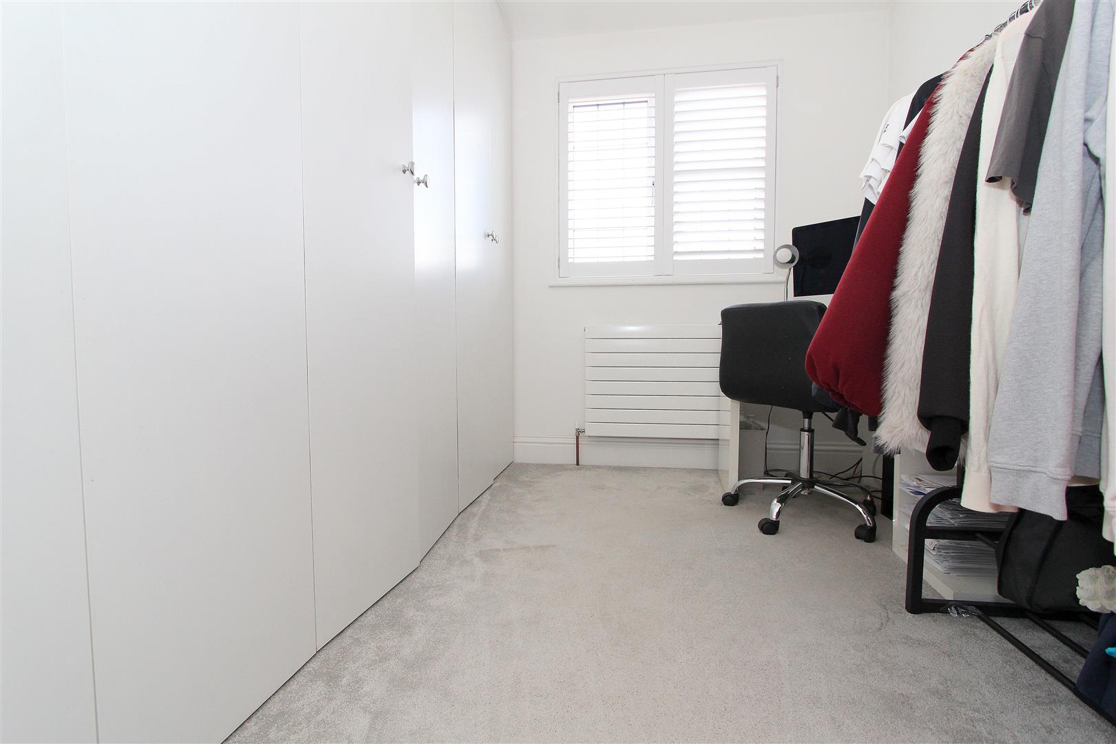 UPVC double glazed window to rear aspect and window front, access to eaves storage, walk-in wardrobe with fitted shelving, modern radiator.