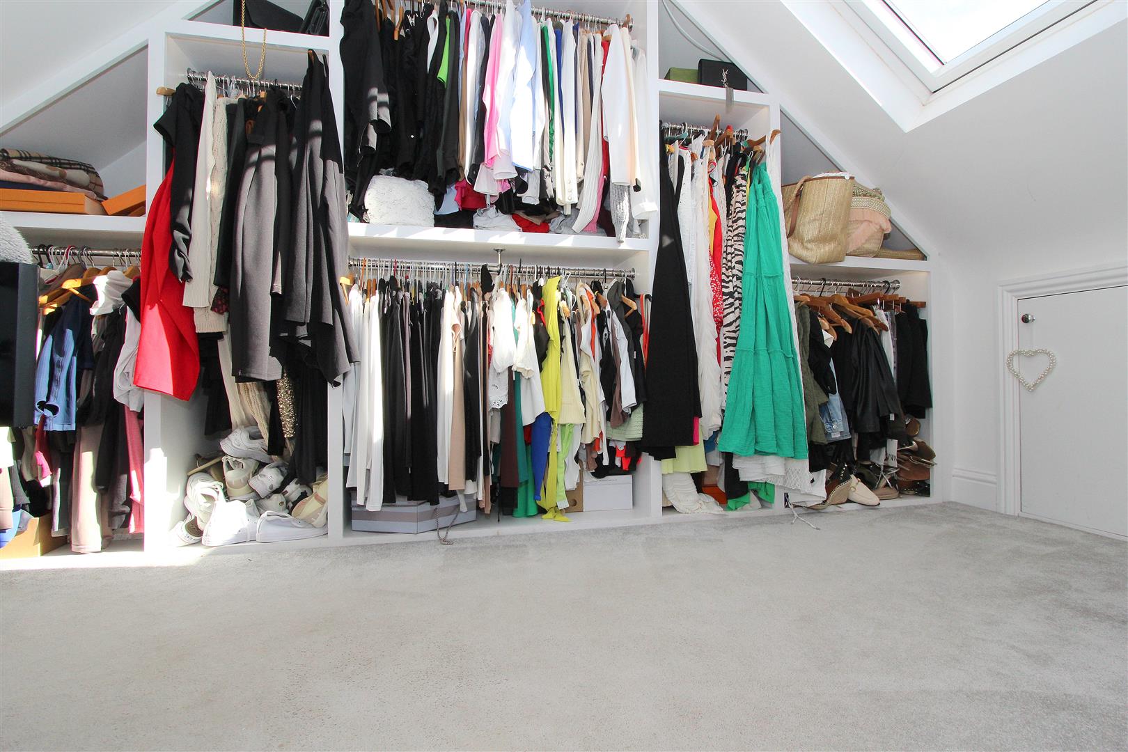 Velux window to rear aspect, fitted shelving units with hanging rails, access to eaves storage.