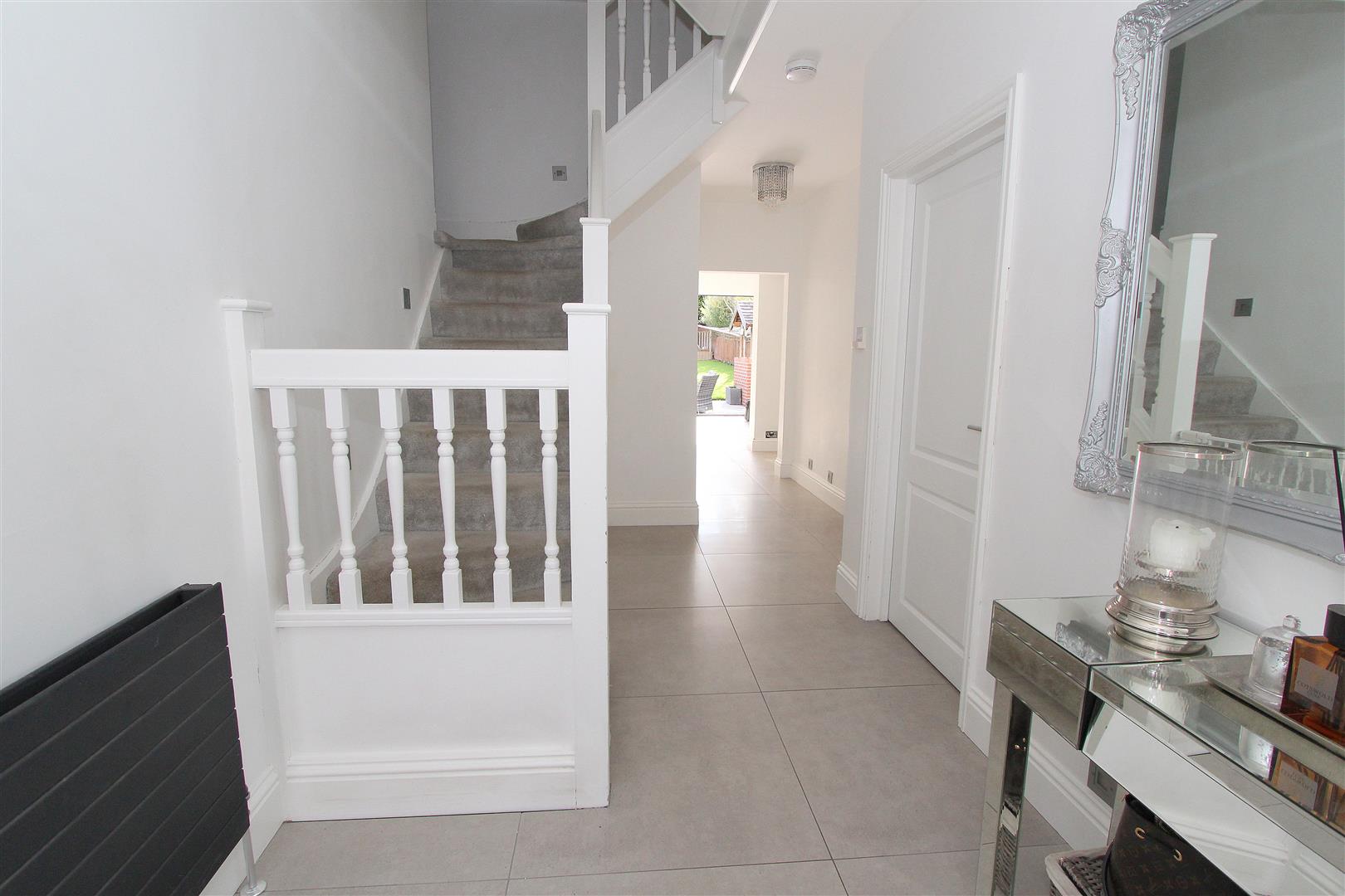 Tiled flooring with underfloor heating, double panel radiator, under stairs storage cupboard, wall mounted digital thermostat and alarm panel.