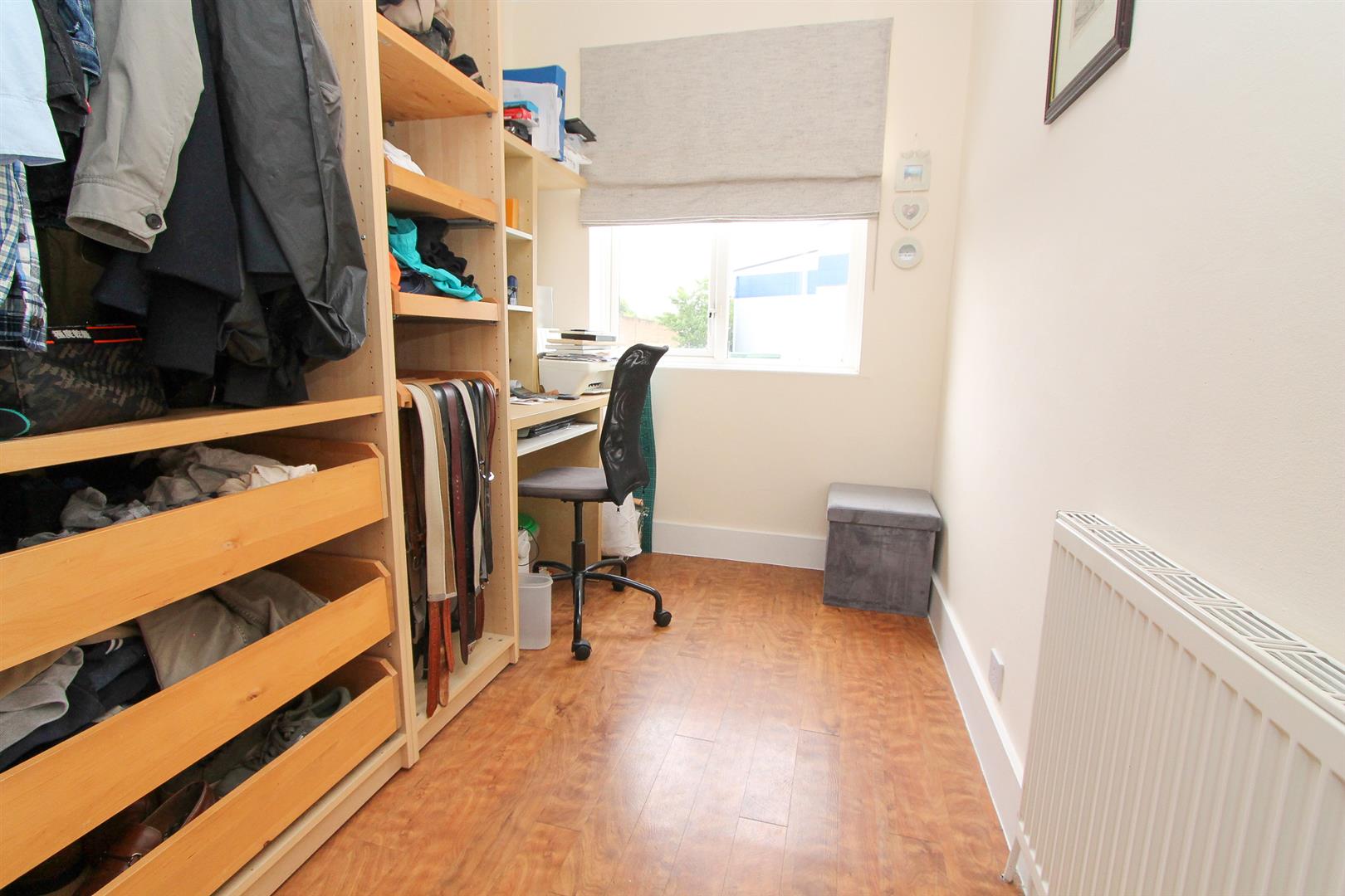 UPVC double glazed window to front aspect, wood effect flooring, single panel radiator, coved ceiling, fitted wardrobes and drawers.
