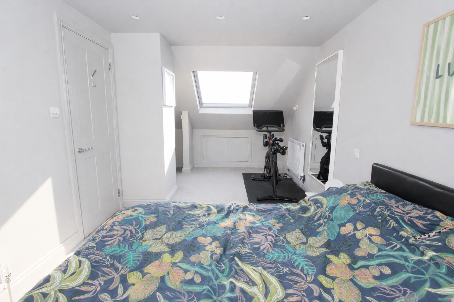 UPVC double glazed French doors to rear Juliet balcony and Velux window at front, access to eaves storage, recess with dressing and study area, two double panel radiators.