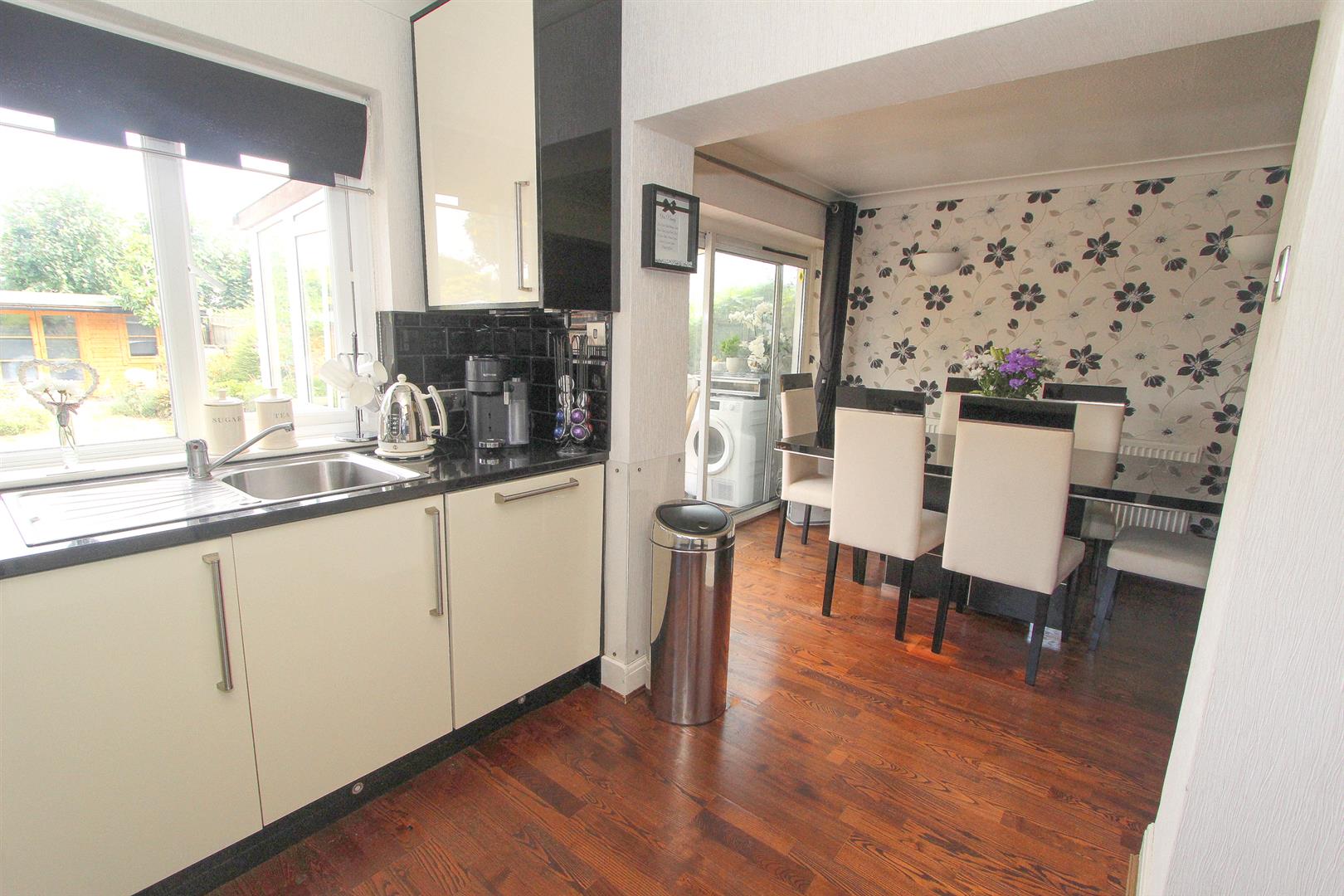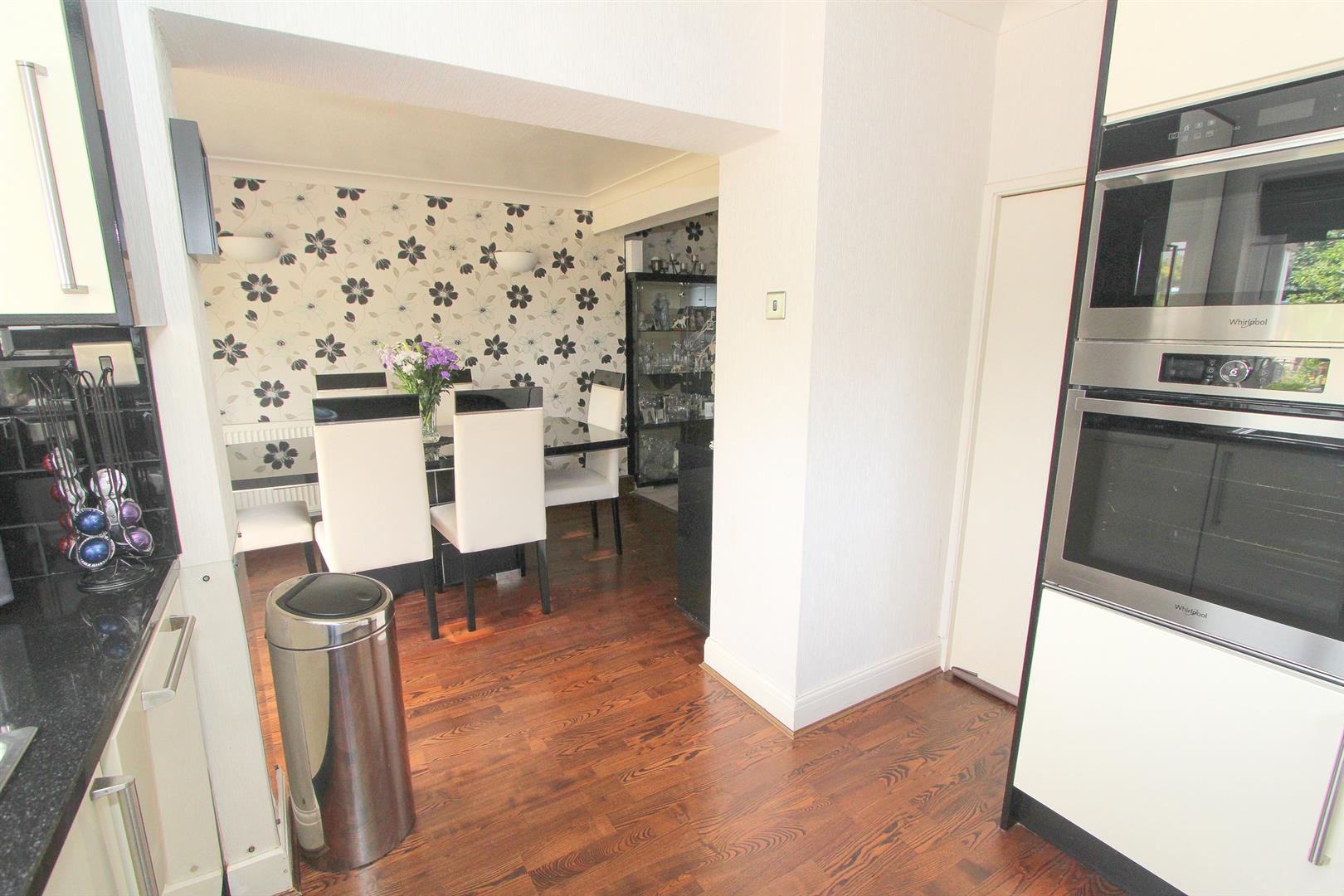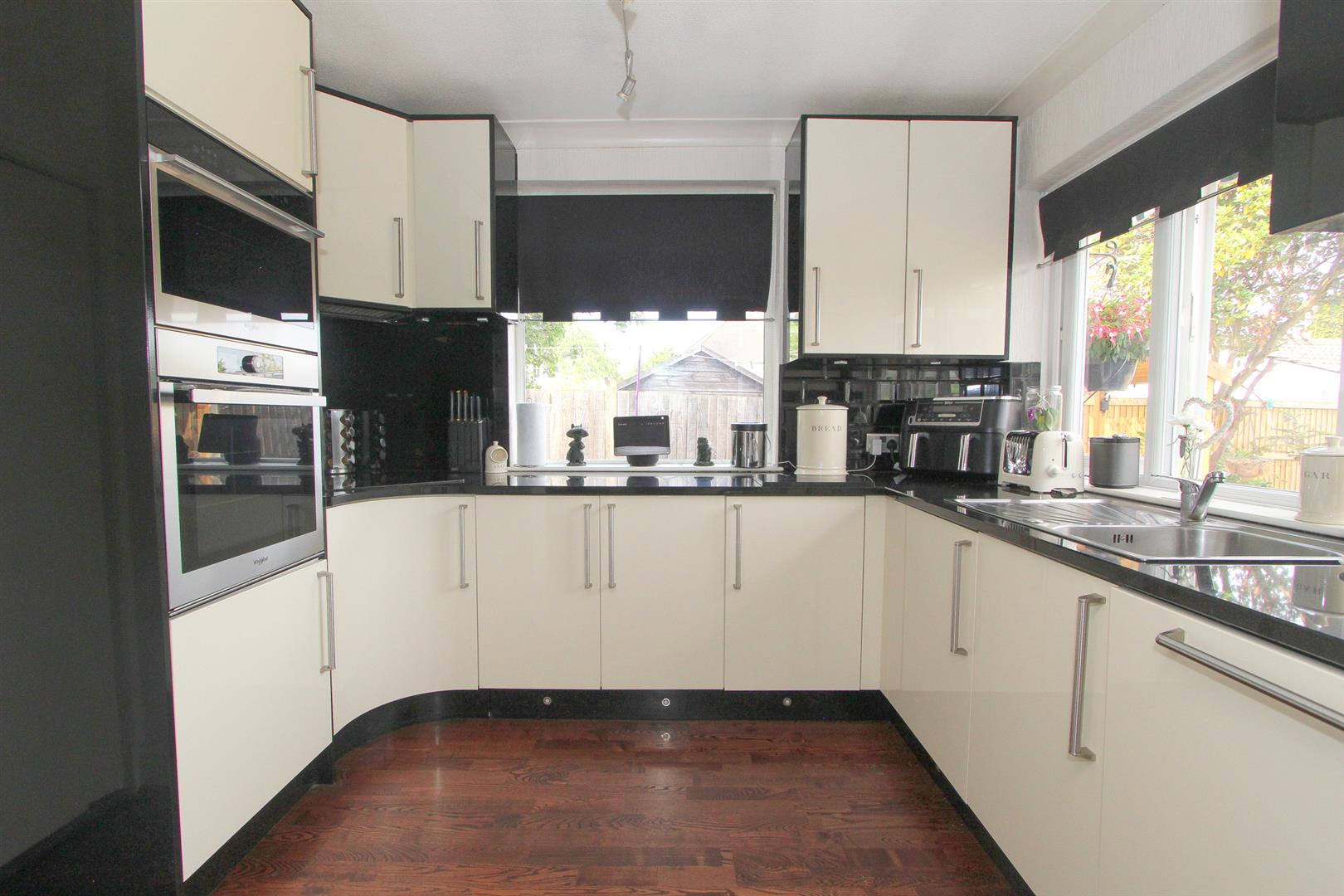Range fitted wall units with matching cupboards below, granite worktops with inlaid stainless steel sink and chrome mixer tap, inlaid hob with extractor fan above, integrated oven/grill and microwave, integrated dishwasher, integrated fridge, wood laminate flooring, UPVC double glazed windows to side and rear aspects.