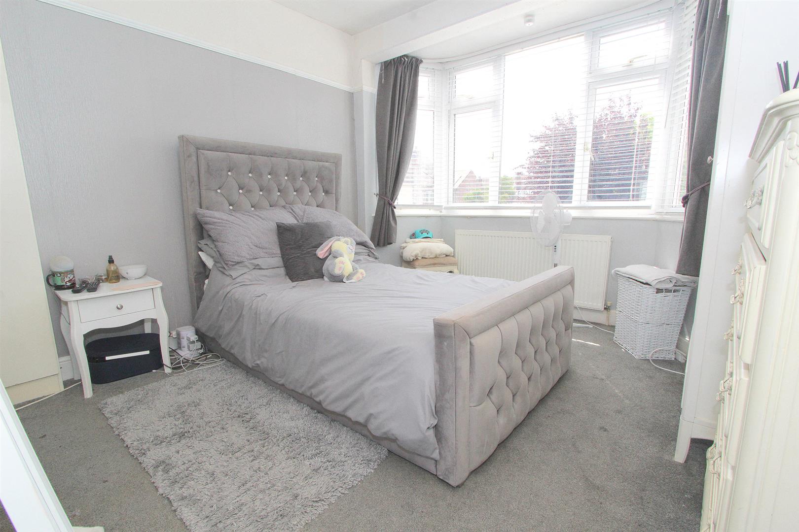 UPVC double glazed bay window to front aspect, single panel radiator, fitted wardrobes, picture rail.