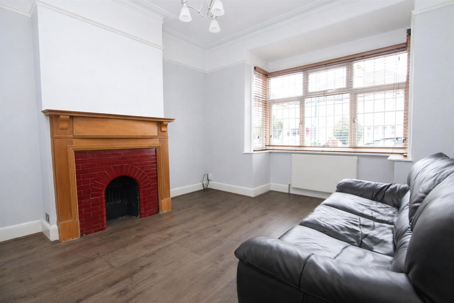 Feature fireplace, radiator, laminate flooring, double glazed leaded light bay window to front aspect