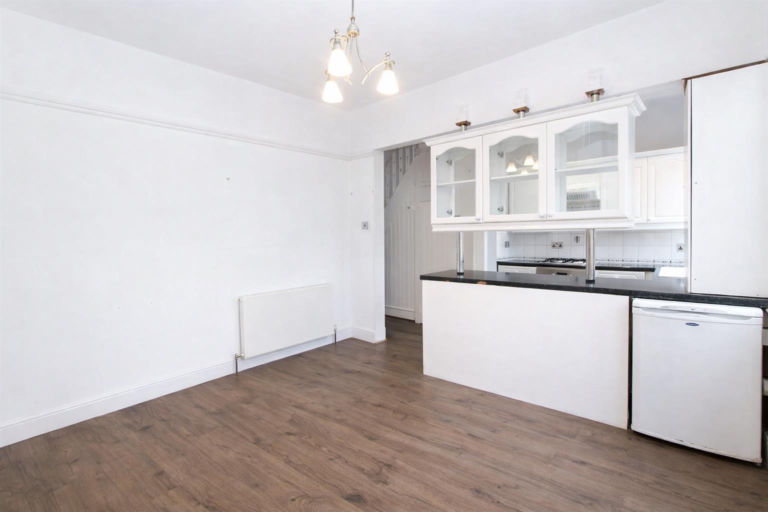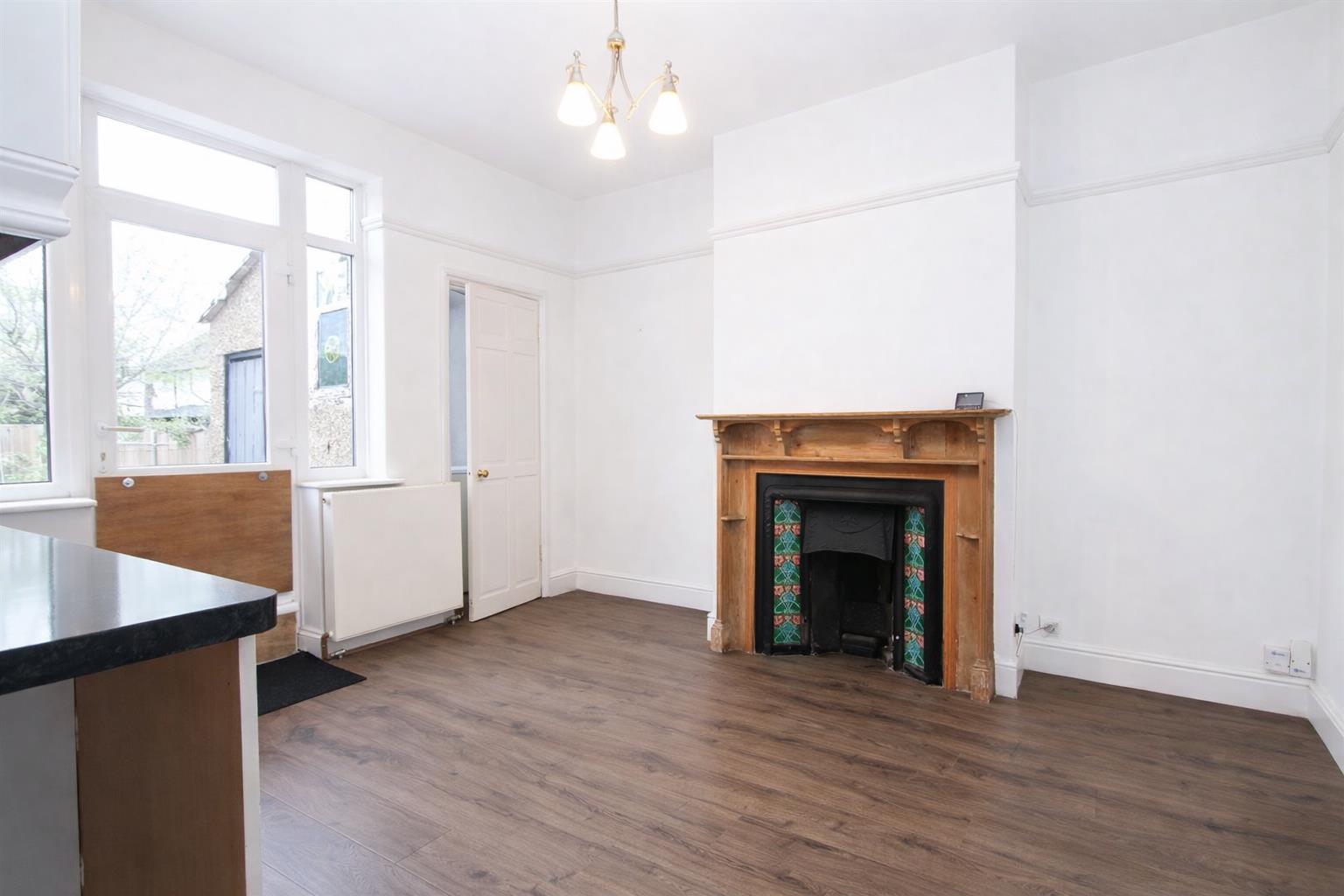 Radiators, laminate flooring, cast iron fireplace, double glazed windows and patio door meeting out to garden, utility cupboard with space plumbing for washing machine.