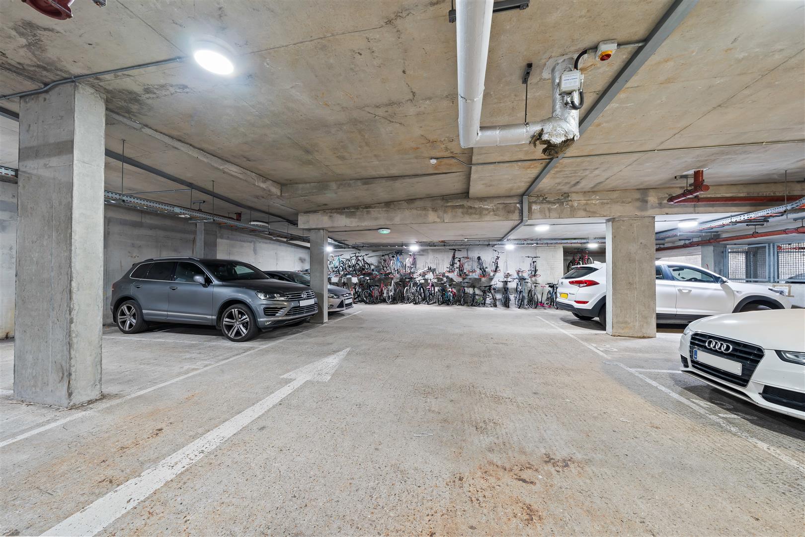 Allocated parking space in a secure underground car park, along with secure bike stands.