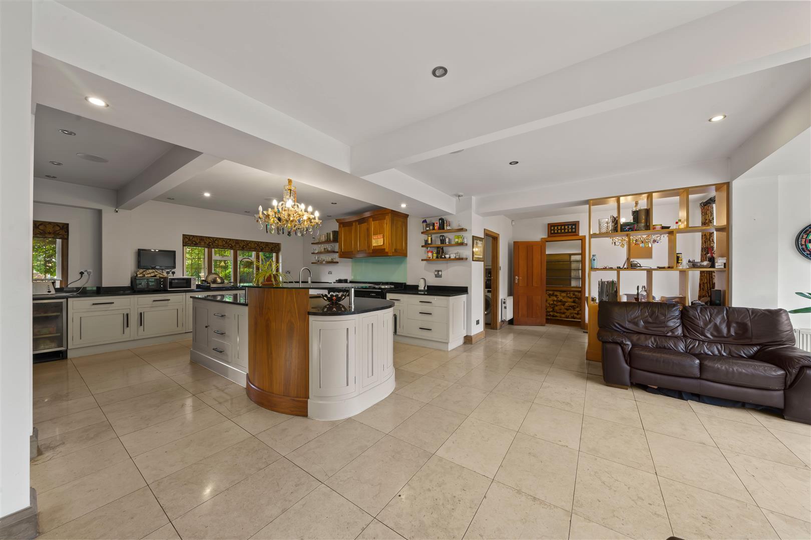 Double glazed leaded light windows to side and rear aspects and doors leading to garden, feature sky lantern, tiled flooring with underfloor heating.