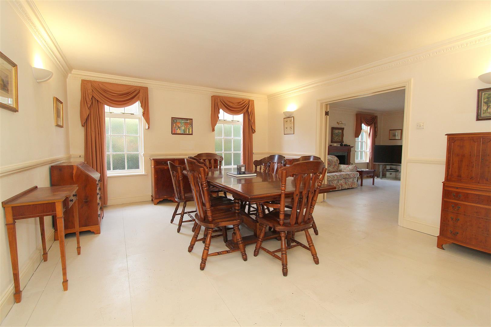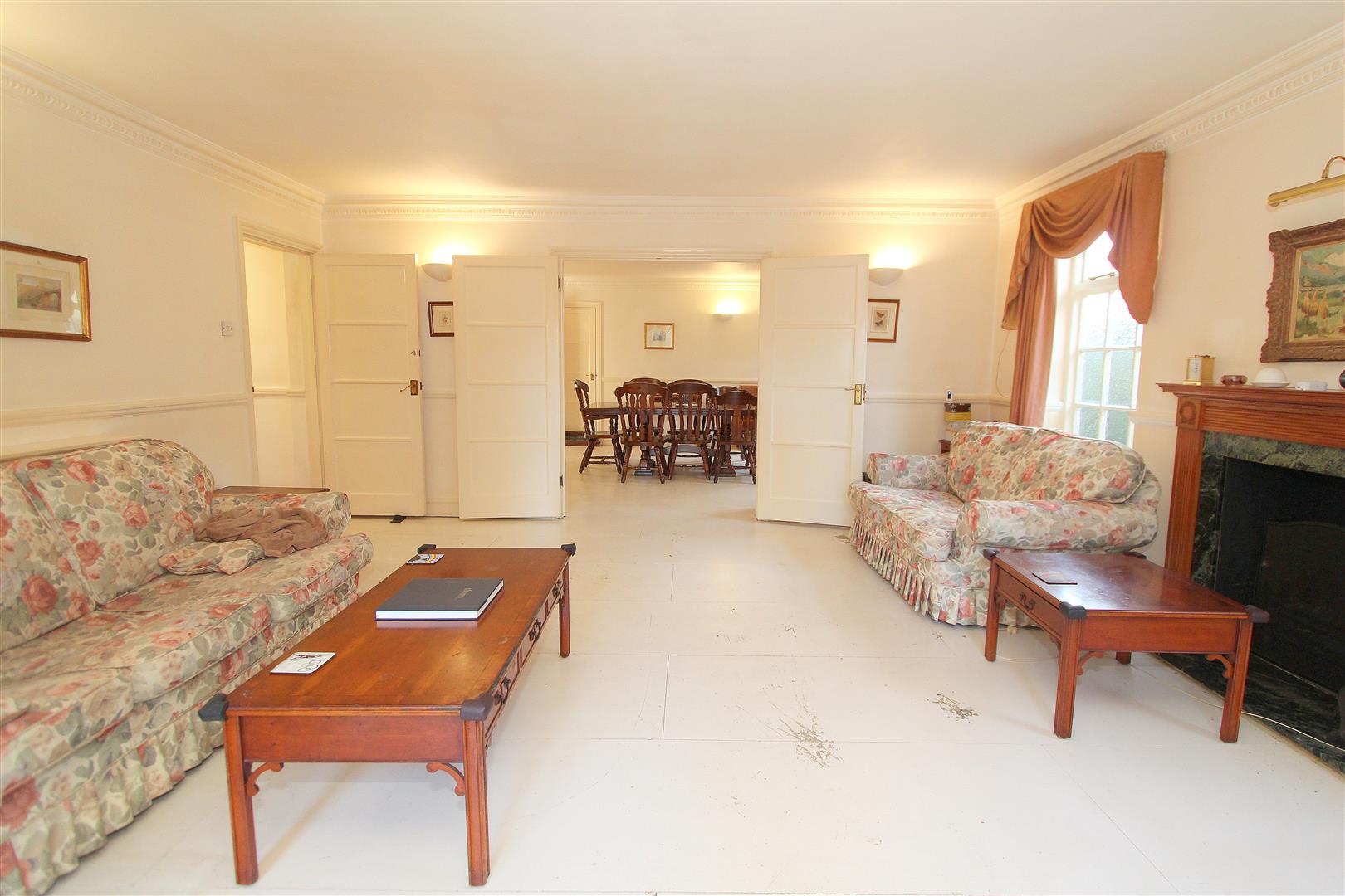 Obscure glazed windows to side aspect, dado rail, decorative coved ceiling, covered radiator, access to garage, double wooden doors to..
