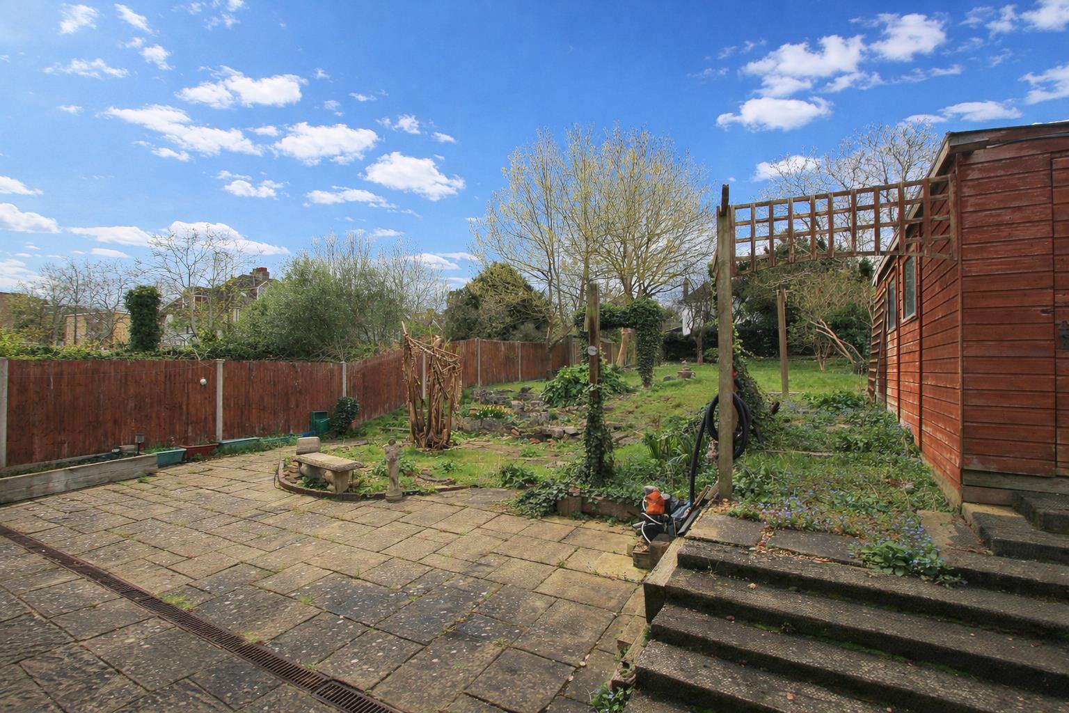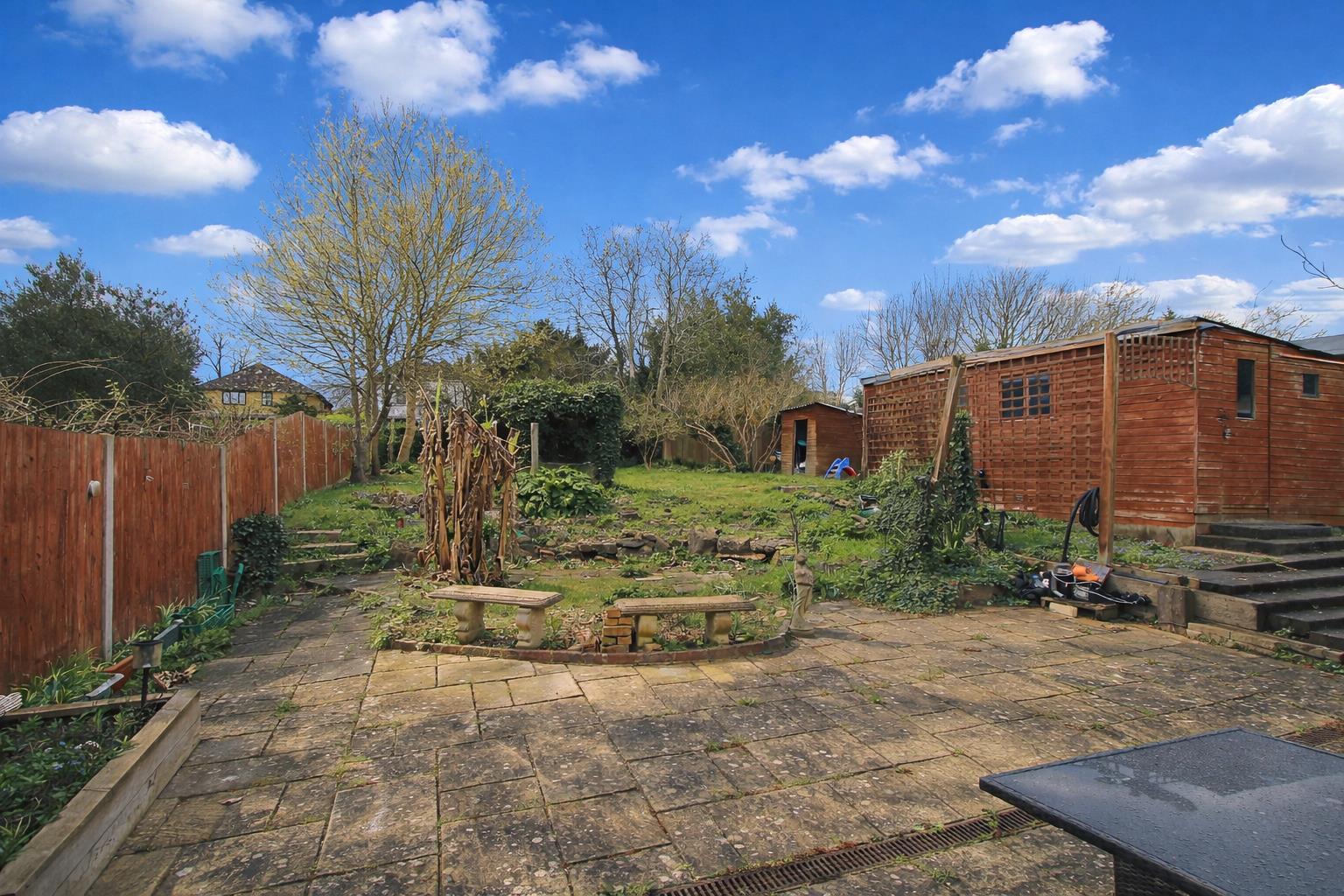 Large rear garden, spacious patio area and mainly laid to lawn.